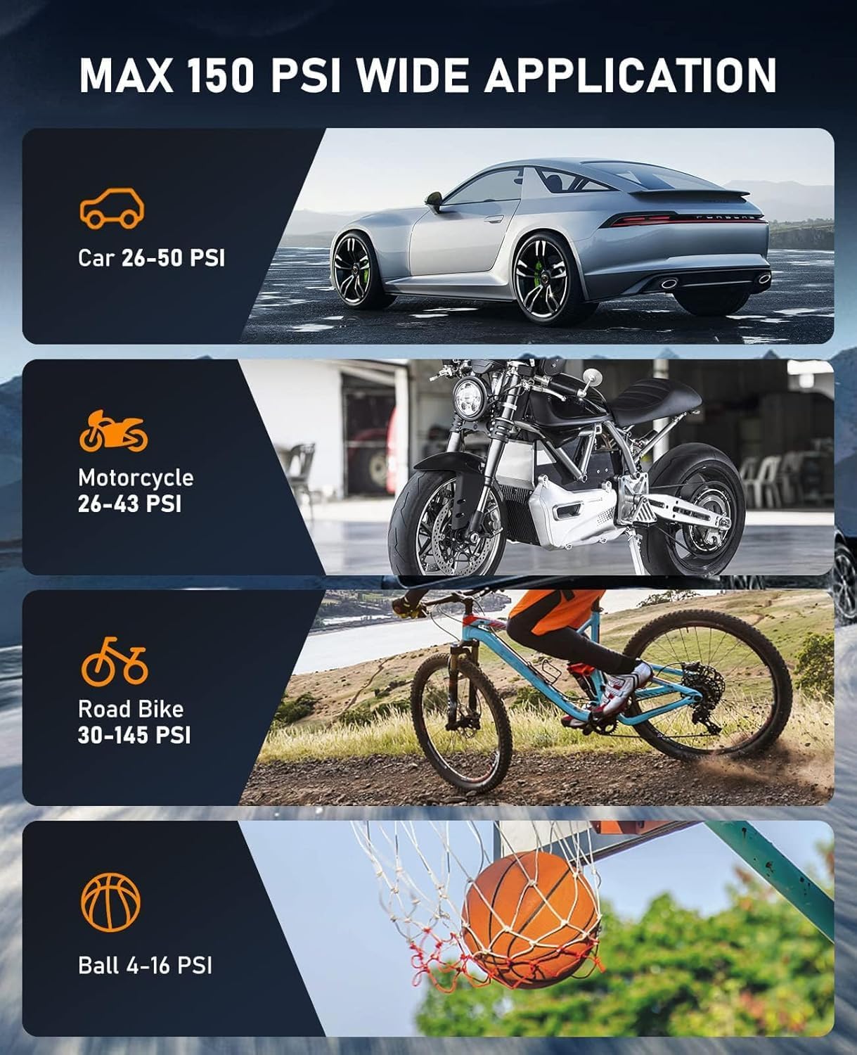 - Compact, Durable, and Always Ready: Sleek, lightweight, and tough enough for daily use, this air pump fits easily in your glove box or backpack. Whether you're at home, on a road trip, or off the grid, it's the compact solution you can count onâno need to rely on gas station air ever again.
