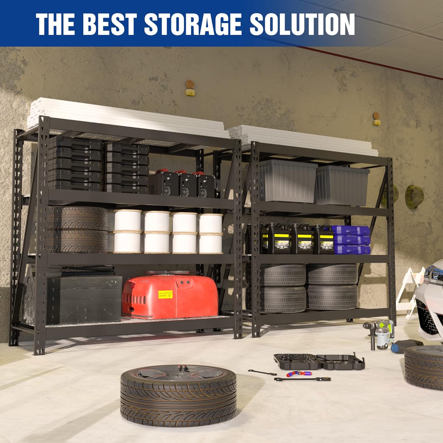 - EXTRA WIDE BEAMS — You will be amazed by the remarkable size: 68"W x 24"D x 65"H. WORKPRO 4-tier garage shelving stores all kinds of heavy objects, especially the larger ones.