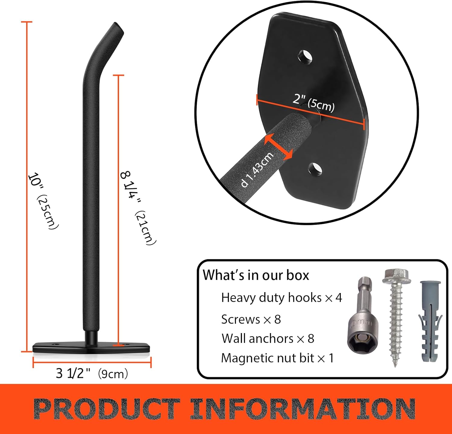 Tire Rack Wall Mount, 10 Inch Large Garage Hooks Heavy Duty Storage, Ladder Hooks for Hanging, Garage Organizer for Wheel Holder, Folding Chairs, Power Tool, Bulk Items (88lbs 4-Pack)