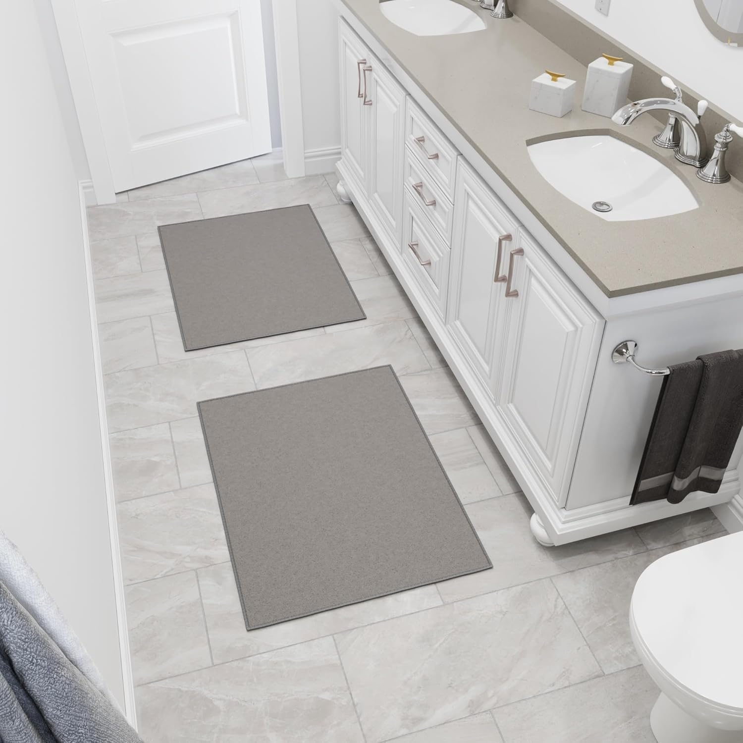 Ottomanson Rugs for Entryway 2'3" x 3' - 2 Pack Non Slip Solid Small Area Rugs Durable Front Door Mat Rug Stain Resistant Entrance Rugs for Bathroom Kitchen Bedroom & Living Room, Gray