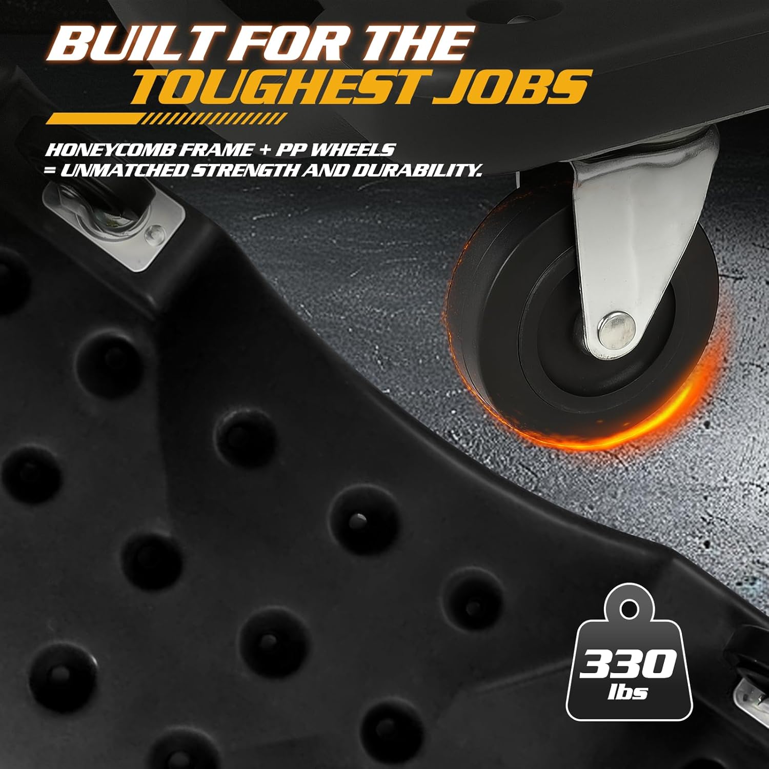 - Durable and Lightweight Construction: Made from high-strength impact-resistant plastic, this garage creeper supports up to 330 lbs while remaining lightweight at just 11 lbs for easy portability.