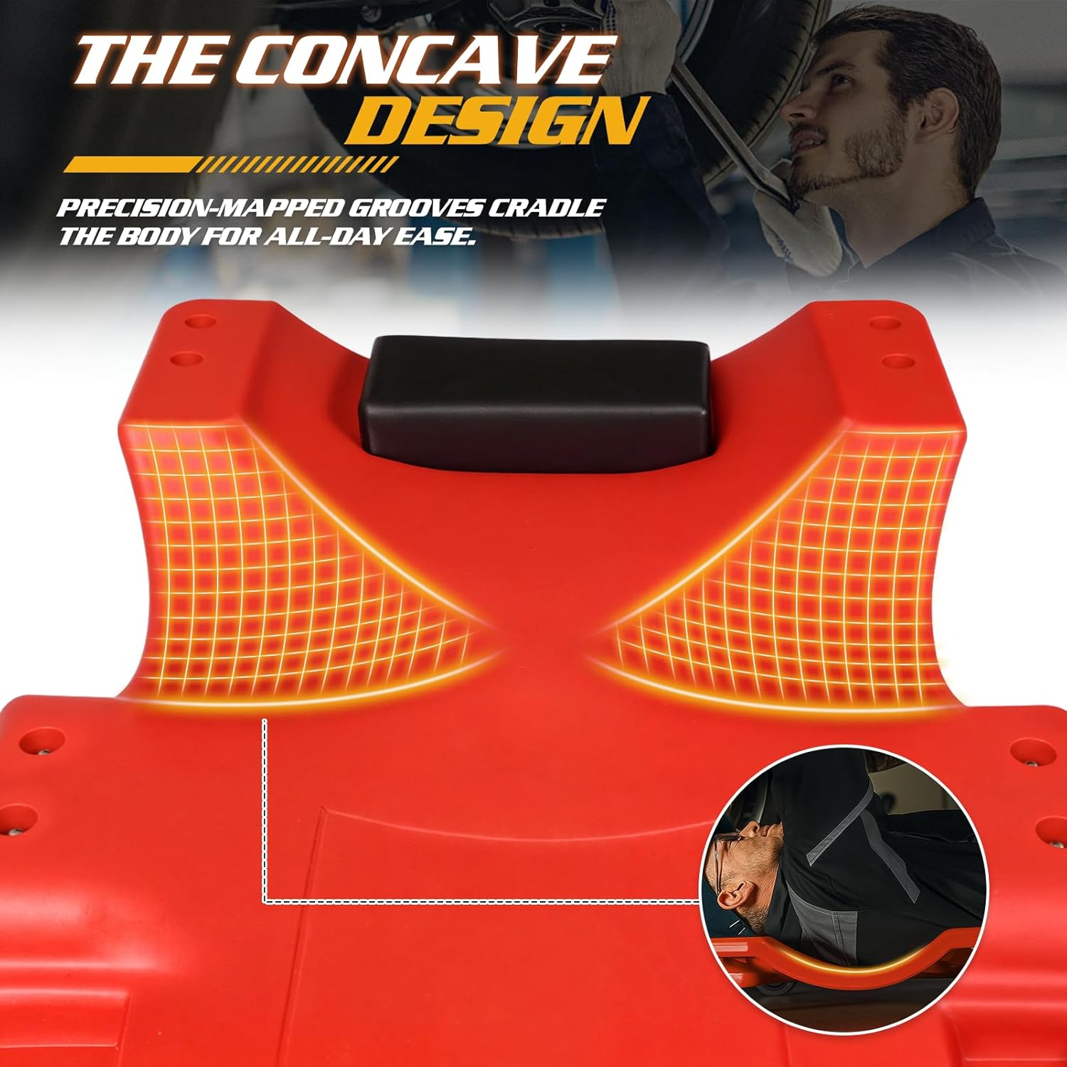 - Ergonomic Design for Comfort and Support: Features built-in shoulder recesses and a padded headrest, providing extra support while working under vehicles. The contoured shape reduces strain on your back and neck during long repair sessions.