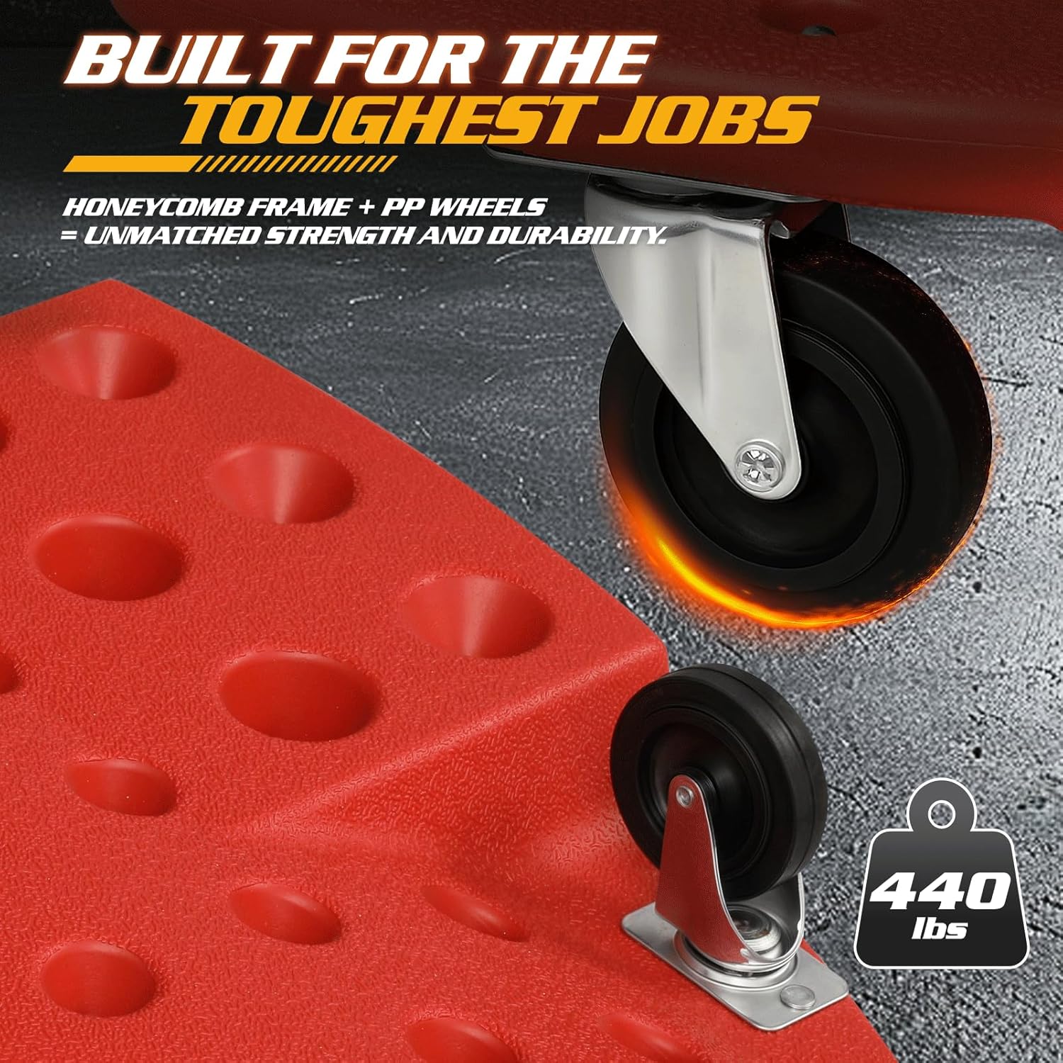 - With a maximum load capacity of 440 lbs, the garage creeper is suitable for most users. Easy and convenient installation, no complicated steps.