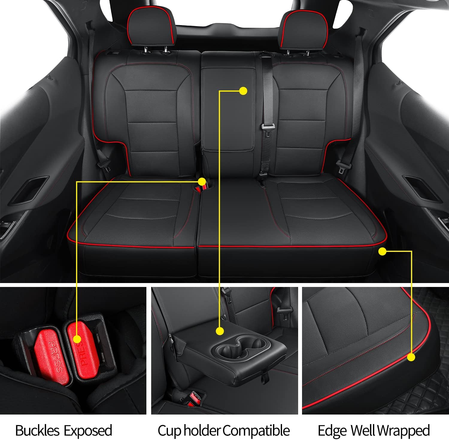 RISINGSTAR Terrain Seat Covers, fit for 2018-2024 GMC Terrain SUV with Rear Split Seats, Water Proof Faux Leather(Full Set, Black&Red)
