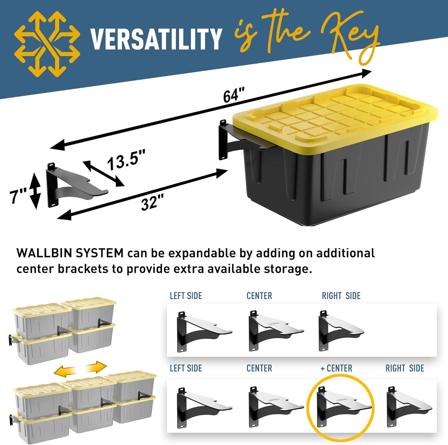 - VERSATILITY - The Classic WallBin System can expand by simply adding additional center brackets to accommodate more storage bins depending on your needs. Perfect for storing seasonal items, holiday decors, miscellaneous tools and accessories, and so much more! The wall mounting design ensures safekeeping of your supplies while organizing and reclaiming your floor space.
