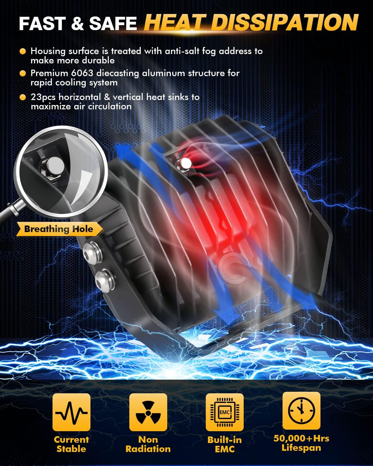 - 【Trusted Durability】Sturdy and thickened aluminum alloy heat sinks dissipate heat effectively, built-in EMC anti-interference technology, prolongs the lifespan to over 50,000 hours.