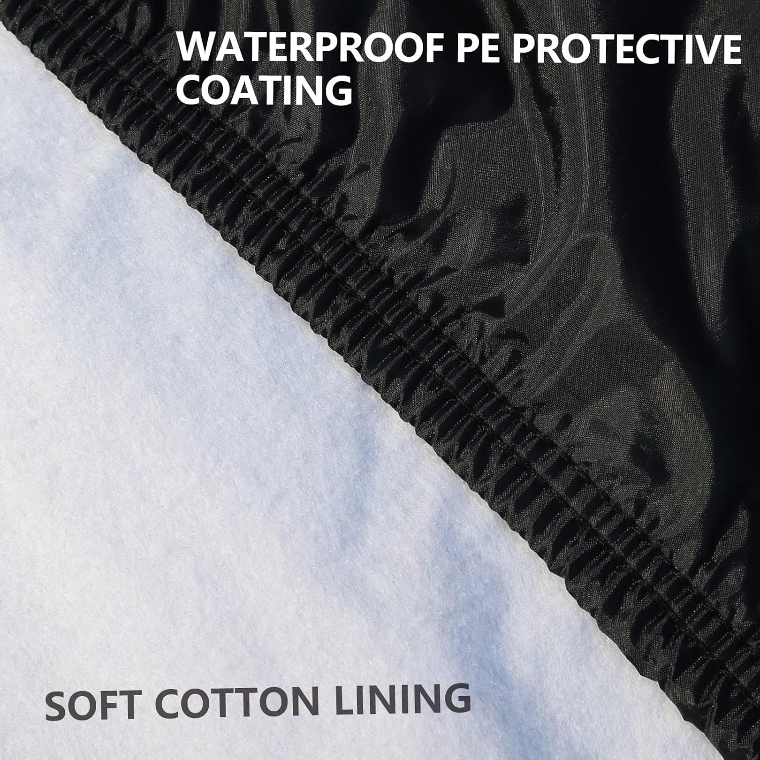 - PRACTICAL MATERIAL: The multi-layer thickened full car covers is made of 190T polyester. 1. PU coating is waterproof and tear-resistant. 2.The inner cotton of the cover is scratch resistant and protects your car paint. 3. High reflective polyester layer with good anti-UV and sun protection, keep your car interior cool all day.