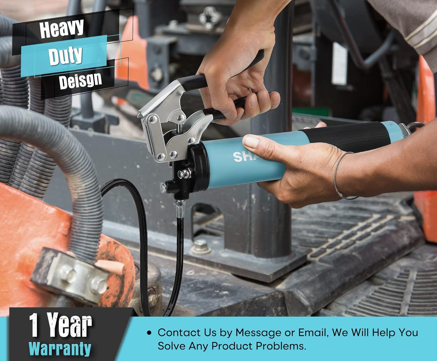 - Robust Build Quality: SHALL pistol grip grease gun is constructed of premium quality durable die cast aluminum, guaranteeing a 7000 PSI Max working pressure and leakage-free performance