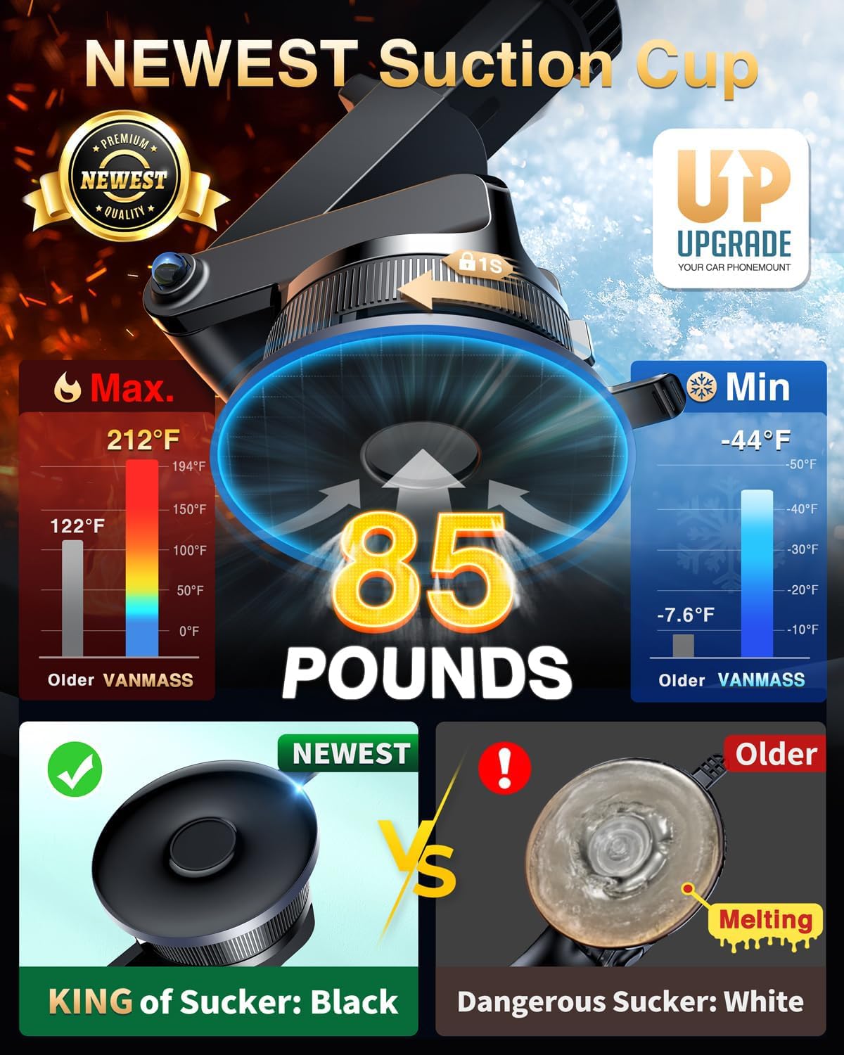- 【Pro Version:VANMASS's Best Choice】VANMASS has been dedicated to car phone holder for 8 years, always leading the car holder industry in all aspects: safety, stability, durability, compatibility, multi-scene adaptability,climate friendly. The pro version mount enables the cutting-edge design team to create the best choice for customers- highest rating, most customers' preference, EU Intellectual Property Patent (No.007708805-0001), Military Grade Cert (No.GZMR220601855501), CP65/REACH/ROHS