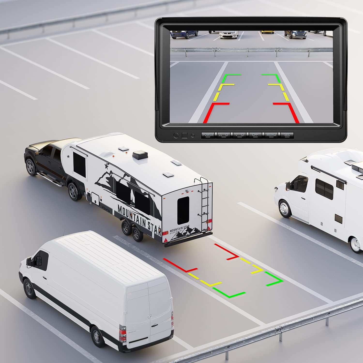 - โ HD Split Screen IPS Monitor : The split-screen display can show images from multiple cameras at the same time, reducing blind spots in your field of view and making your driving and reversing more confident and safe. Split Mode: Full Screen, Dual Split Screen, Triple Split Screen, Quad Split Screen.