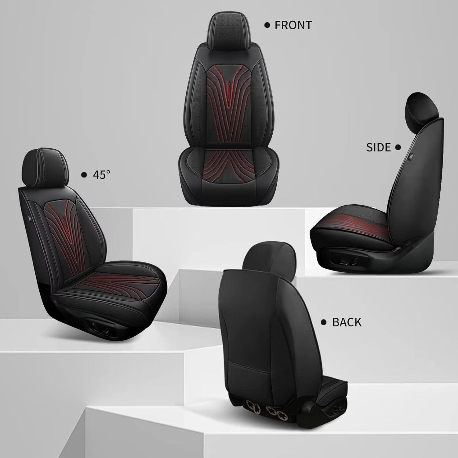 - 🔥🚗【HIGH-QUALITY MATERIAL】:Surface material made of high quality faux leather, soft, durable and waterproof. The delicacy perforations bring breathable comfort experience.The middle part use high rebound sponge,create top resilience for maximum comfort during your drive. Non-slip fabric is used on the bottom layer,keep the covers in place .