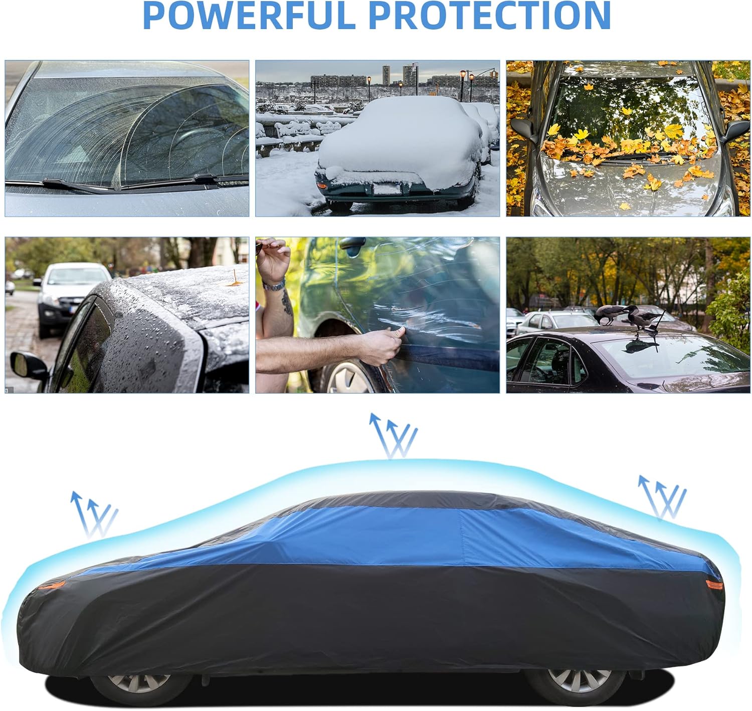 Car Cover Waterproof All Weather,Outdoor Car Cover for Automobiles,Full Exterior Cover Windproof Outdoor car Cover UV/Snow/Hail/Dust Protection Fit Sedan-Length 181" to 190"