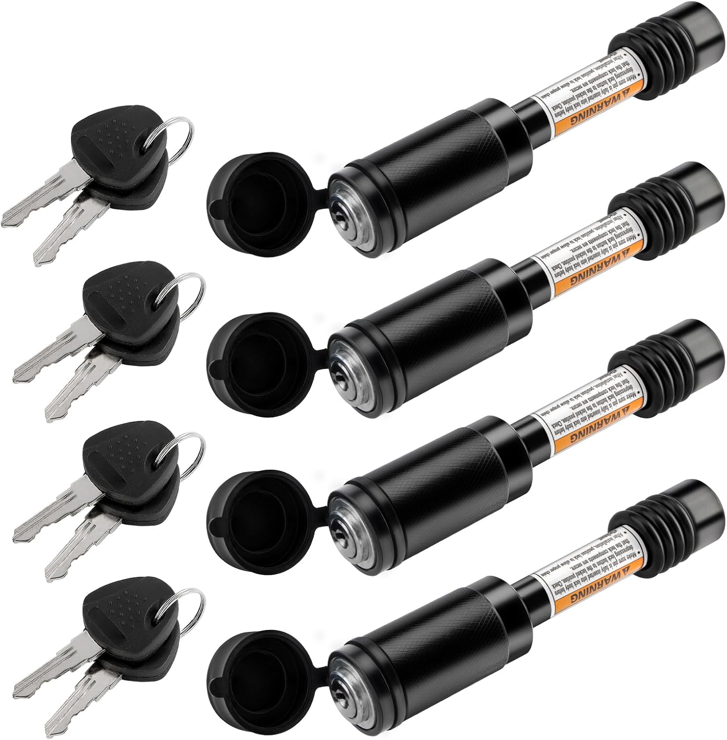 Trailer Hitch Locks, Hitch Lock with 5/8'' Pin Fits Class III IV 2" Hitch Receivers, Tow Hitch Lock with Anti-Rattle O-Rings for Trailer Truck Car Boat (4 Pack)