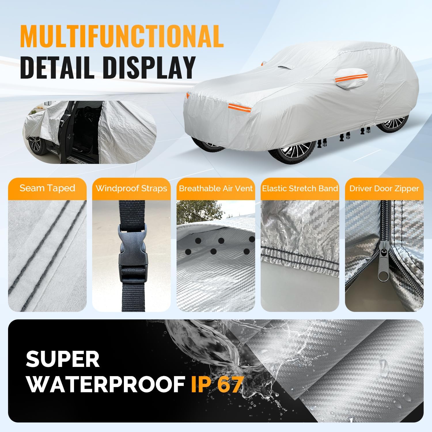 30 Layers SUV Car Cover for Automobiles All Weather Waterproof, Outdoor Snowproof UV Protection Windproof, Door Zipper, Soft Cotton, Heavy Duty Universal Car Covers, (Silver, Fit SUV 191"-200")