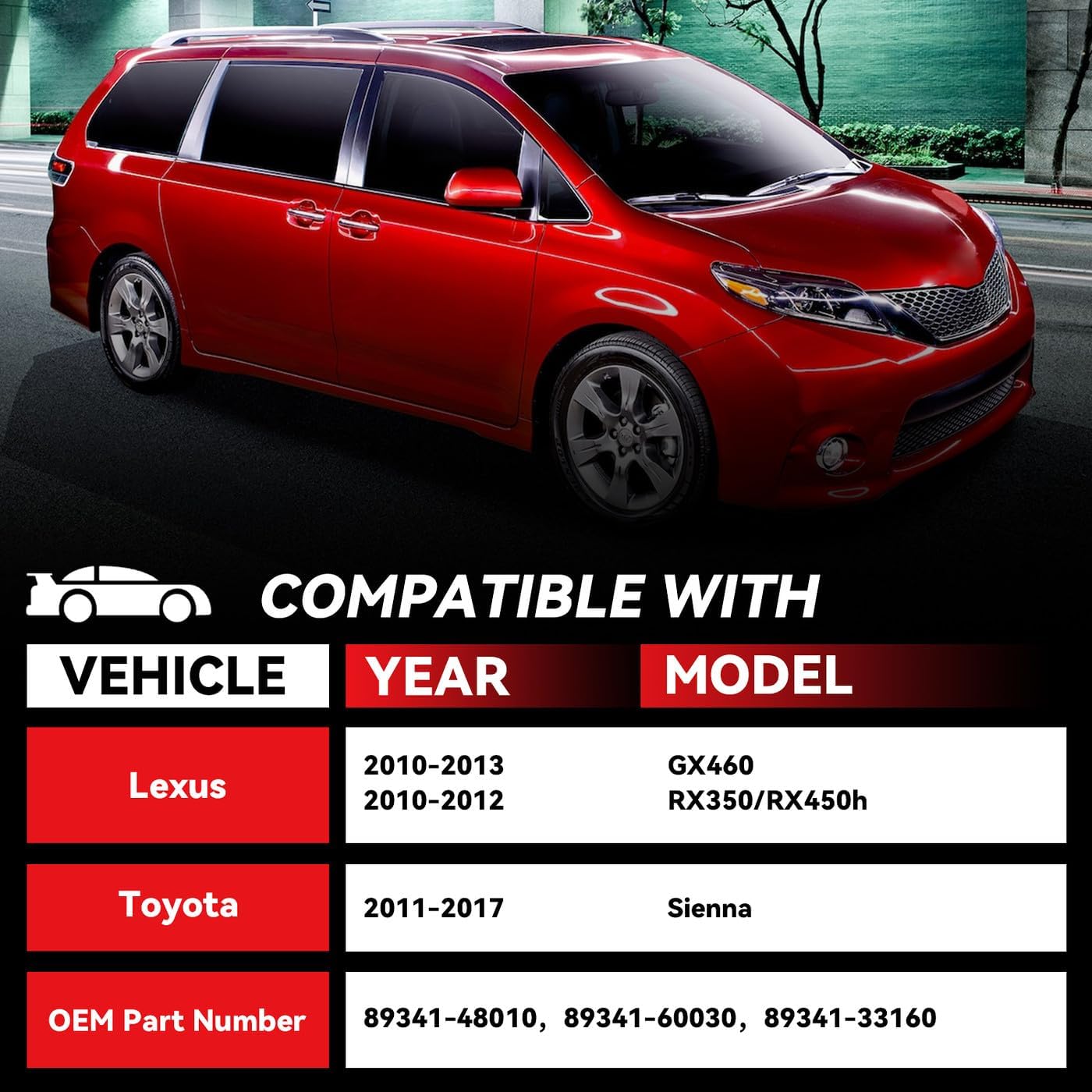 - [Fitment Guide]: Compatible with 2011-2017 Toyota Sienna, 2010-2013 Lexus GX460, 2010-2012 Lexus RX350/RX450h