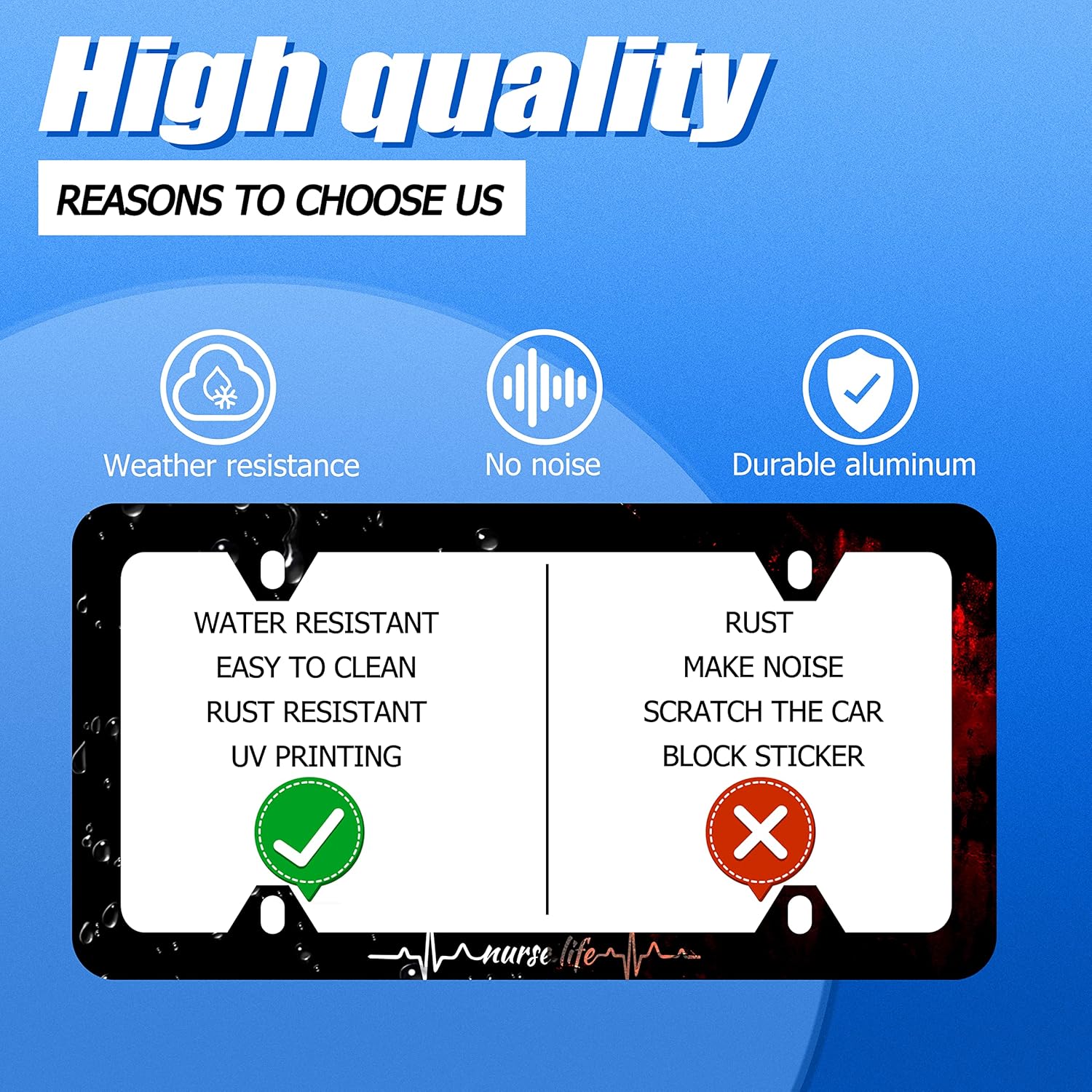 - Design:Use Advanced digital printing Protects license plate frames from Whether it's a car wash, heavy rain or hot weather, it still looks brand new,Let your car still be unique and stylish while driving on the road