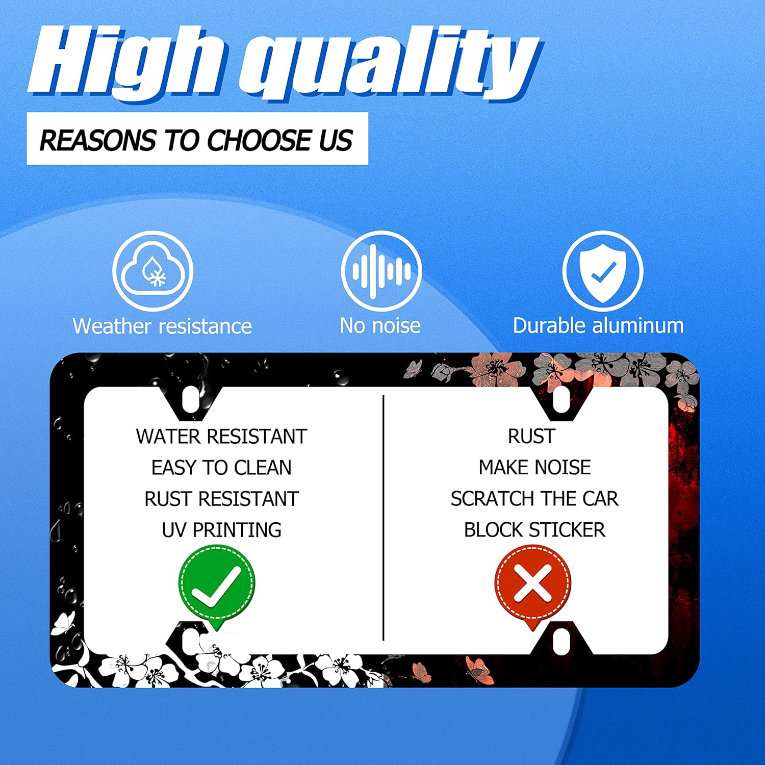 - Design:Use Advanced digital printing Protects license plate frames from Whether it's a car wash, heavy rain or hot weather, it still looks brand new,Let your car still be unique and stylish while driving on the road