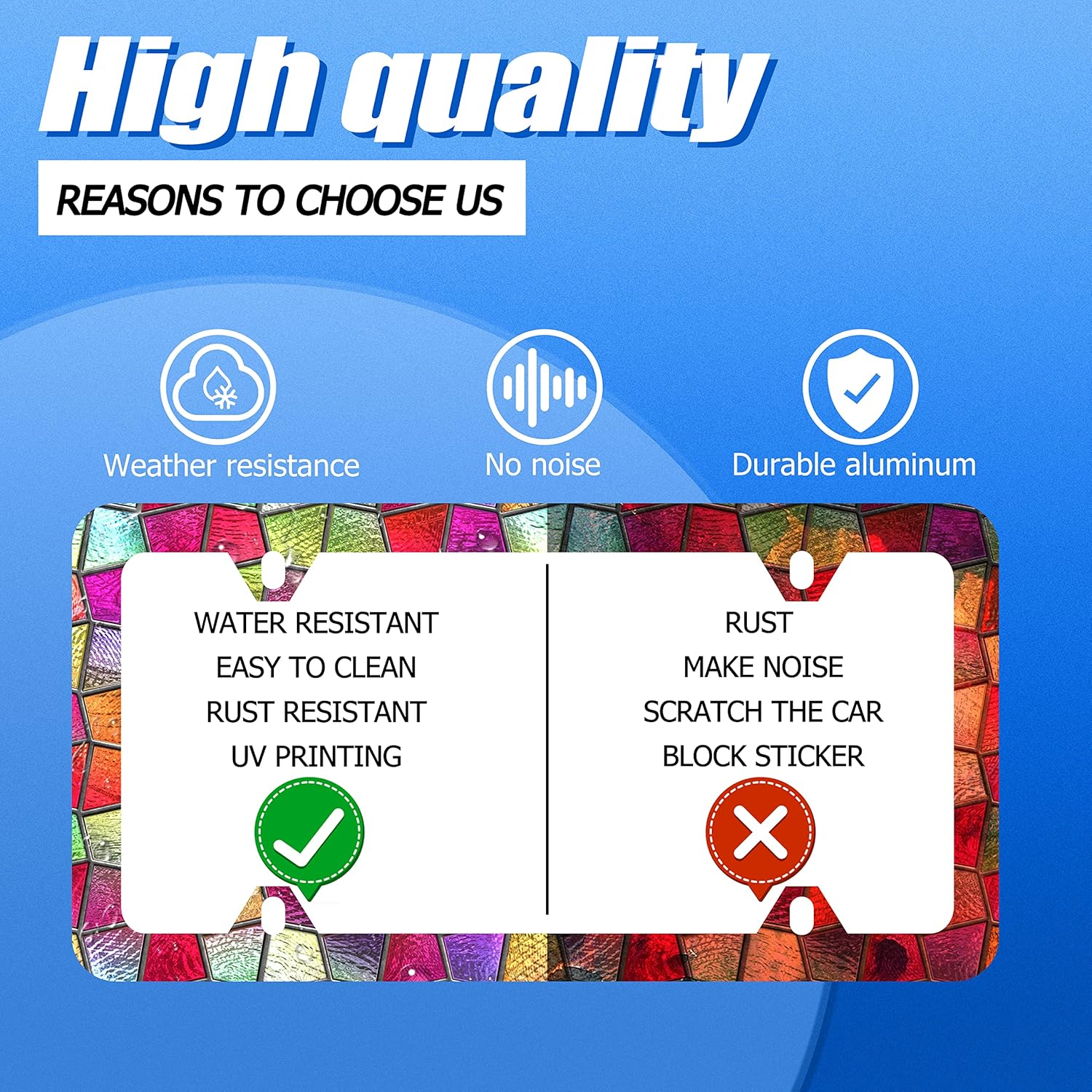 • Design:Use Advanced digital printing Protects license plate frames from Whether it's a car wash, heavy rain or hot weather, it still looks brand new,Let your car still be unique and stylish while driving on the road