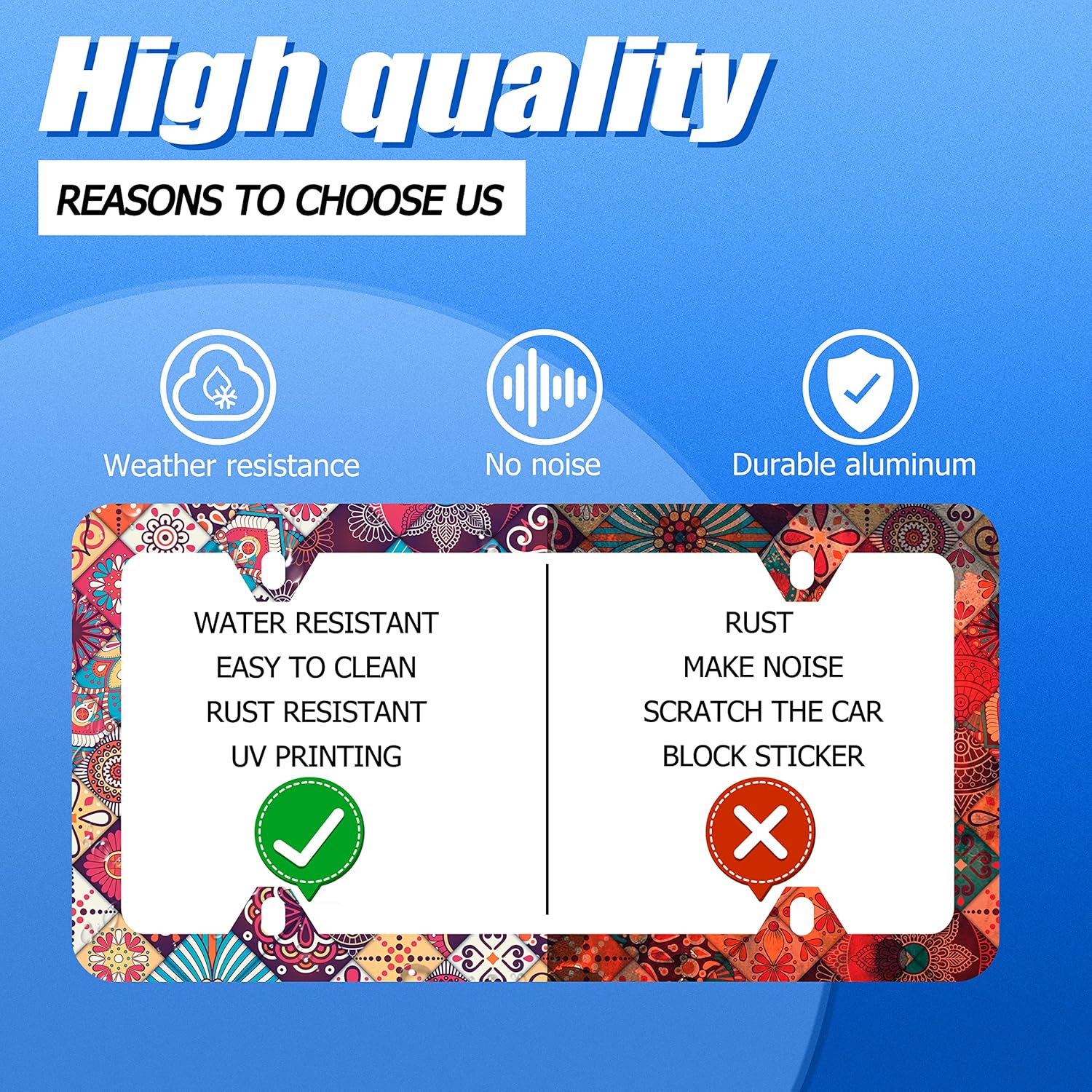 Stitching Tile Boho Pattern License Plate Frame Stainless Steel Parts Colorful License Plate Decorative with Screws Size 12.3" x 6.3" Women
