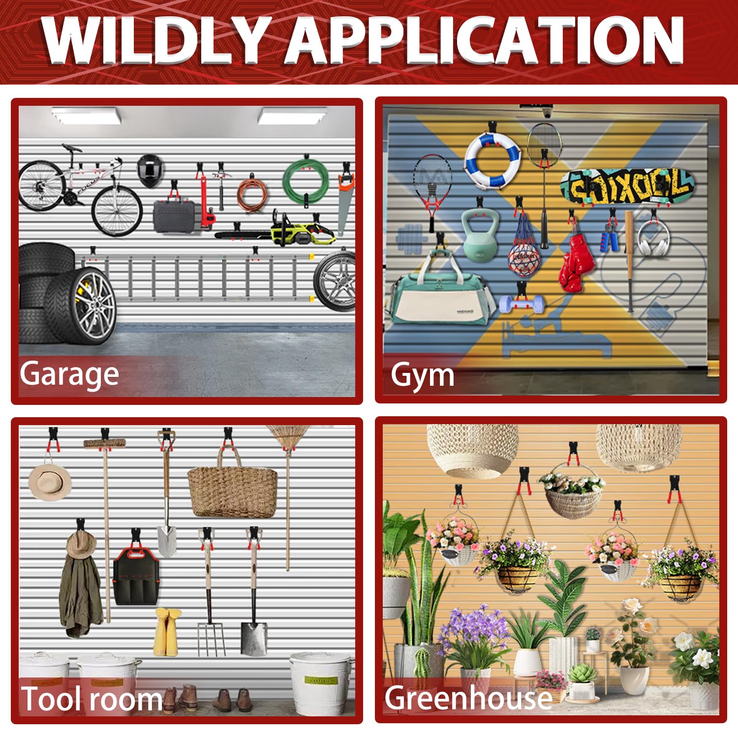 - Multi-Functional Hook: The slat wall hooks set can be given as an exciting gift to any storage lover or organizer in holiday or daily life. Our highly versatile slatwall hooks and hangers are perfect for a multitude of settings, including garages, hardware stores, home improvement stores, and retail stores