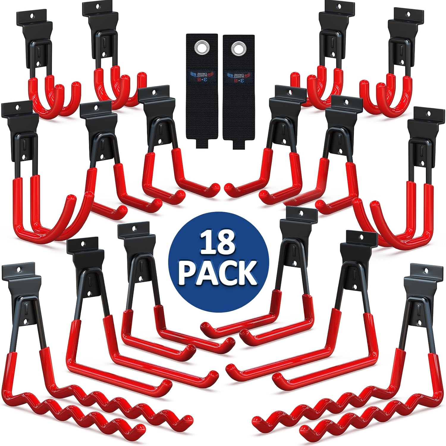 - Multi Sizes Slat Wall Hooks: 18 pcs slat wall accessories in 7 different sizes 2 extension cord organizers, including 2 large wave hooks,2 large square hooks, 2 medium square hooks, 4 small square proslat hooks, 2 media J hooks and 4 small J hooks which can accommodate different types of garden tools and equipments
