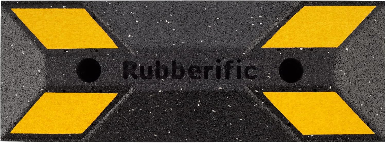 Rubberific Heavy Duty Rubber Parking Stop Durable Easy to Install Reflective Parking Curb Garage Car Stopper for Indoor and Outdoor Use (4 Pack)