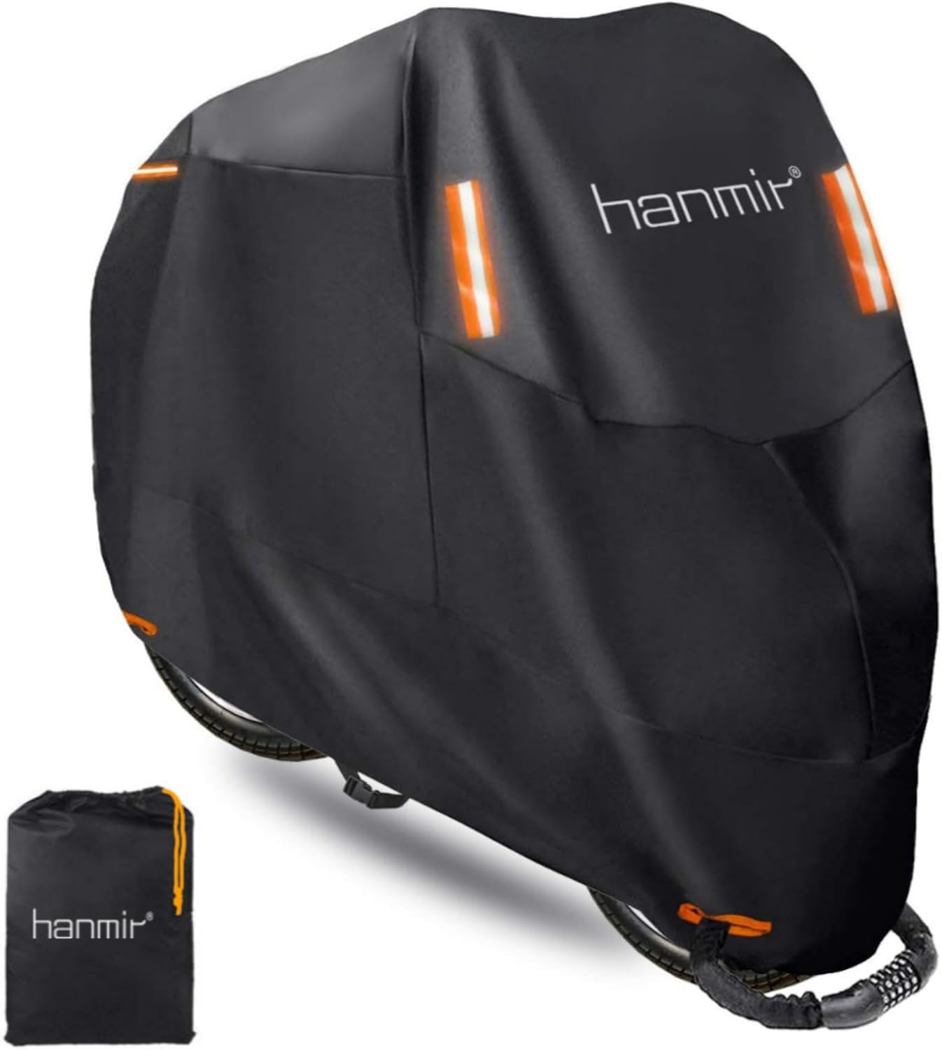 - Careful & Practical: The product has four 6.9-inch reflective warning strips on the front and back, making it safer at night, in foggy weather, in rain, etc. This package also comes with a storage bag. You can use the storage bag to organize the motorcycle cover, it will not take up space and keep the motorcycle cover clean.