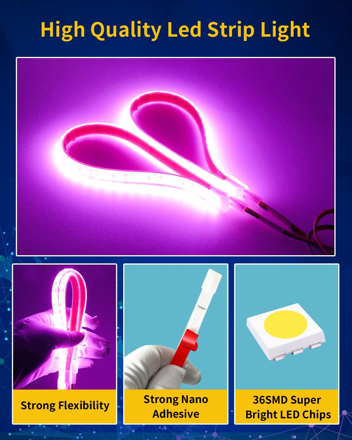 Pink Led Strip Lights,12V Interior Light Strip IP68 Waterproof Cuttable for Car Motorcycles Boat Golf Cart Truck Cargo Home Decoration with Strong Nano Tape 12inch(Pack of 4)