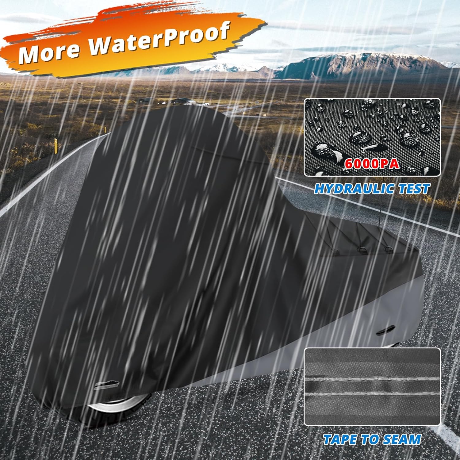 - 【Fitment】SIZE: 107"L * 43"W * 55"H, Compatible with most motorcycle of touring models, suitable for Harley Davidson, Honda, Indian, Ducati, Suzuki, BMW, Triumph Tiger, Yamaha, KTM, Kawasaki. The cover is customized and specially designed for the Touring Models including Road King, Street Glide, Electra Glide, Road Glide and CVO Version, compatible with Goldwings, Chidftain, Challenger, Elite.