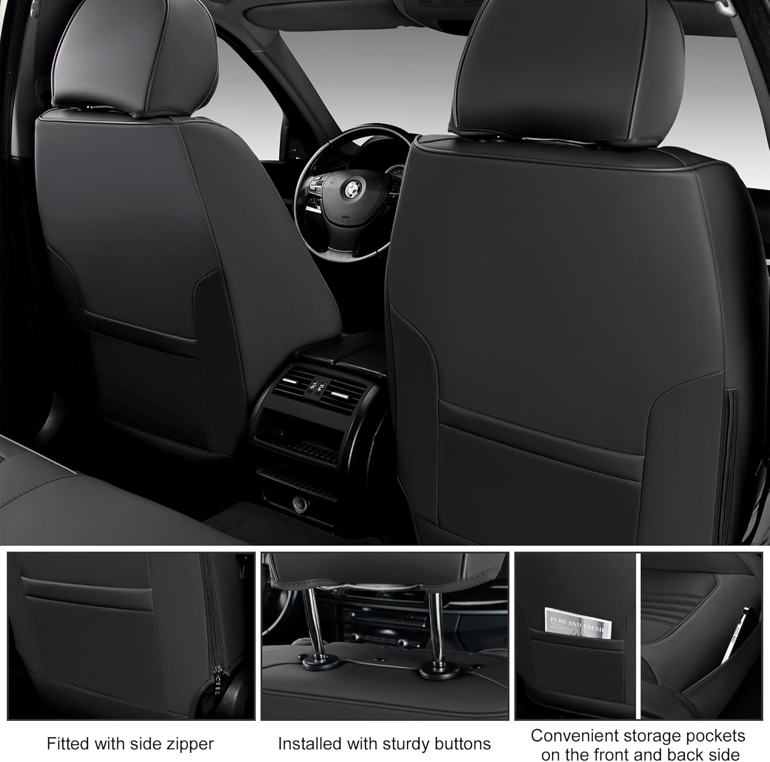 - Leather Seat Covers: BWTJF car seat covers are made of composite Nappa leather, six layers of different materials to create top resilience for maximum comfort during your drive. Offer full covered protection, give your original seats a new look