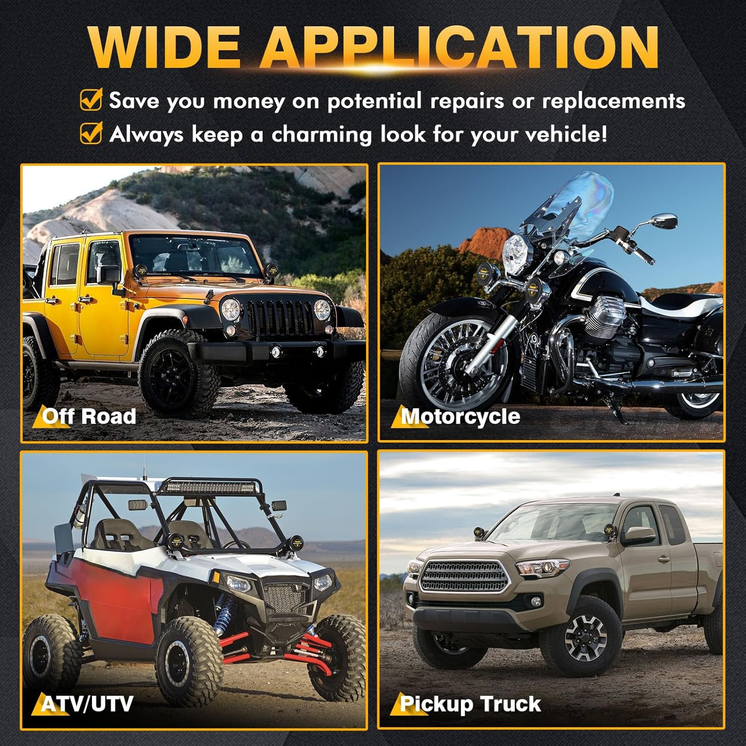 - 【Road Legal Safeguard】Using the 4 inch light cover ensures that the off-road lights comply with road traffic regulations, avoiding penalties from traffic enforcement agencies due to the lights not being legally protected.