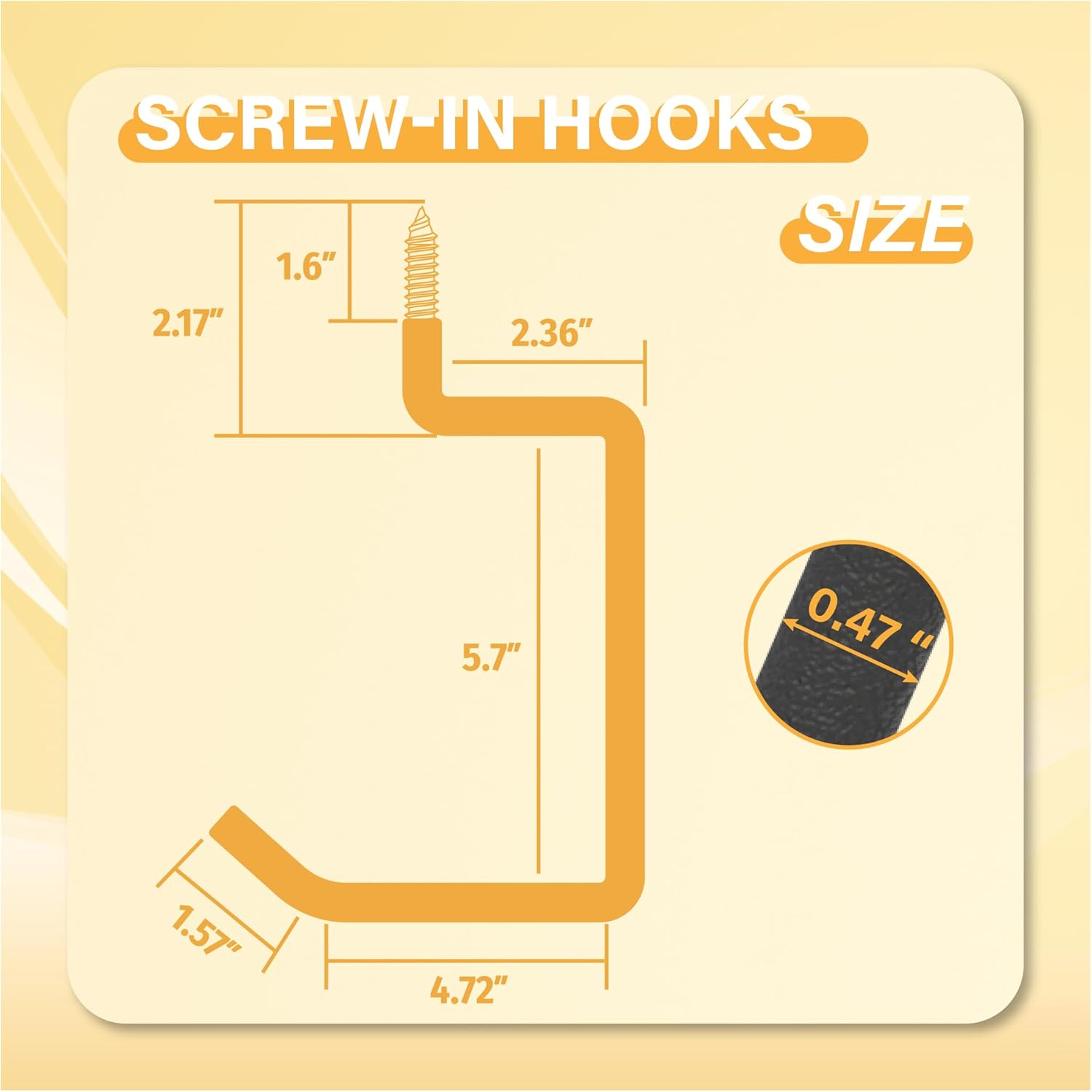 • EFFORTLESS INSTALLATION - Thanks to their sharp threaded heads, our garage utility hooks can be effortlessly screwed into wooden walls without the need for guide holes. For drywall installation, proper anchors and pre-drilled holes are recommended for optimal stability.