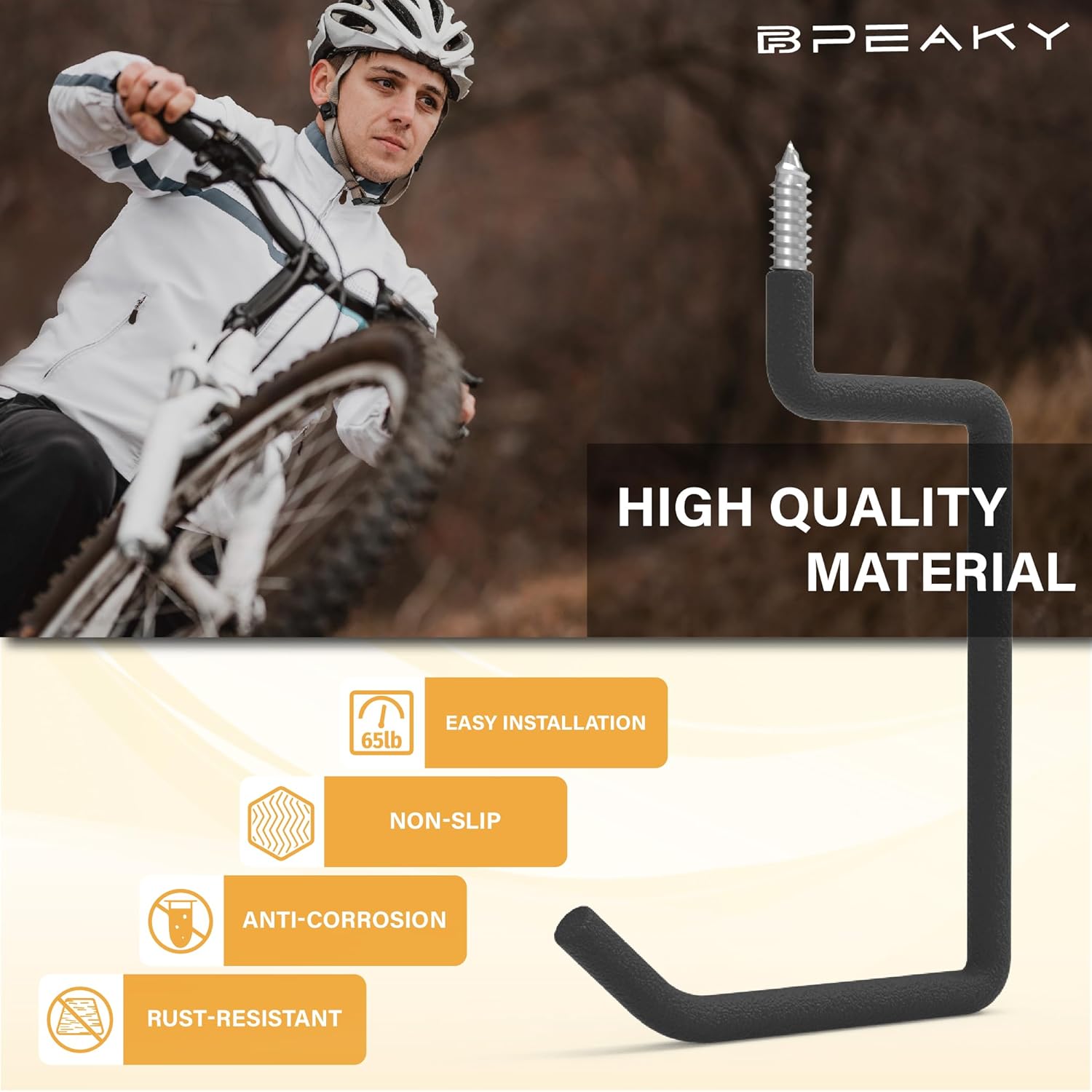 • Robust Steel Construction - Crafted from solid and substantial steel, our garage storage hooks provide exceptional durability, ensuring years of use without any risk of bending or warping. The heavy-duty ladder hooks have a remarkable weight capacity of up to 65 pounds, showcasing impressive strength.