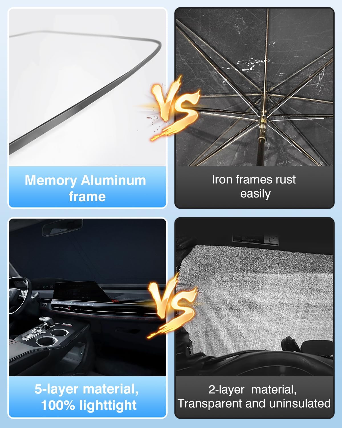 - 【Military Aluminum Frame】The EV6 windshield sun shade is built to last, with high-strength aluminum alloy frame that allow our shade to bend repeatedly without deformation, making our sunshade stronger and more durable than other products on the market.
