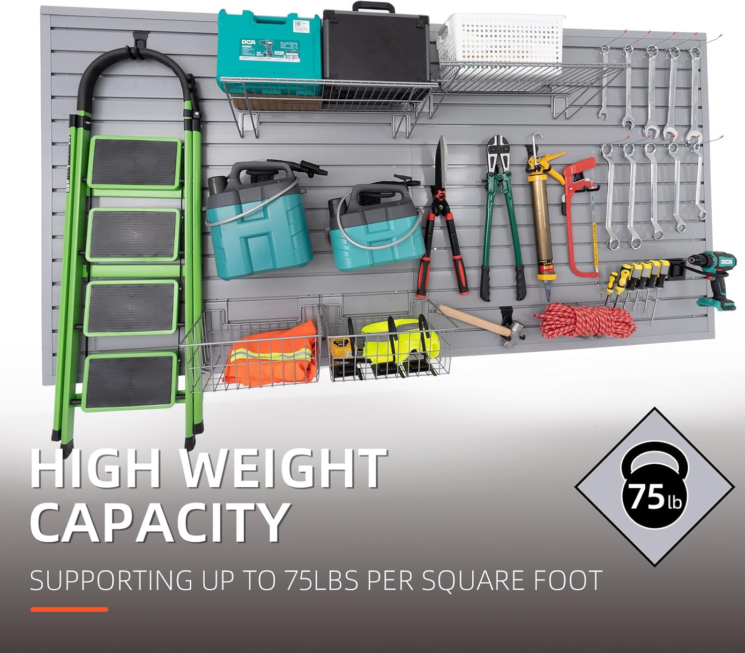 - MAKE FULL USE OF YOUR SPACE: Unleash the true potential of your garage wall organizer for tools with the garage slat wall panel. By making smart use of vertical wall space, you can revolutionize your garage into a seamlessly organized and efficient area. Bid farewell to a messy garage and welcome a meticulously optimized space that maximizes every inch available. Enjoy effortless access to your tools, equipment, and accessories, all while crafting a visually captivating environment.