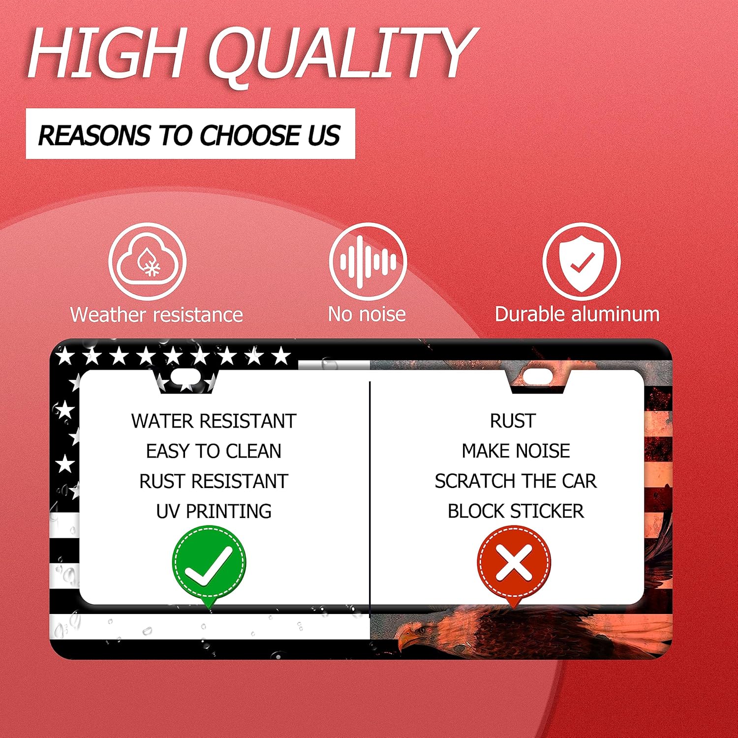 • Design:Use Advanced digital printing Protects license plate frames from Whether it's a car wash, heavy rain or hot weather, it still looks brand new,Let your car still be unique and stylish while driving on the road