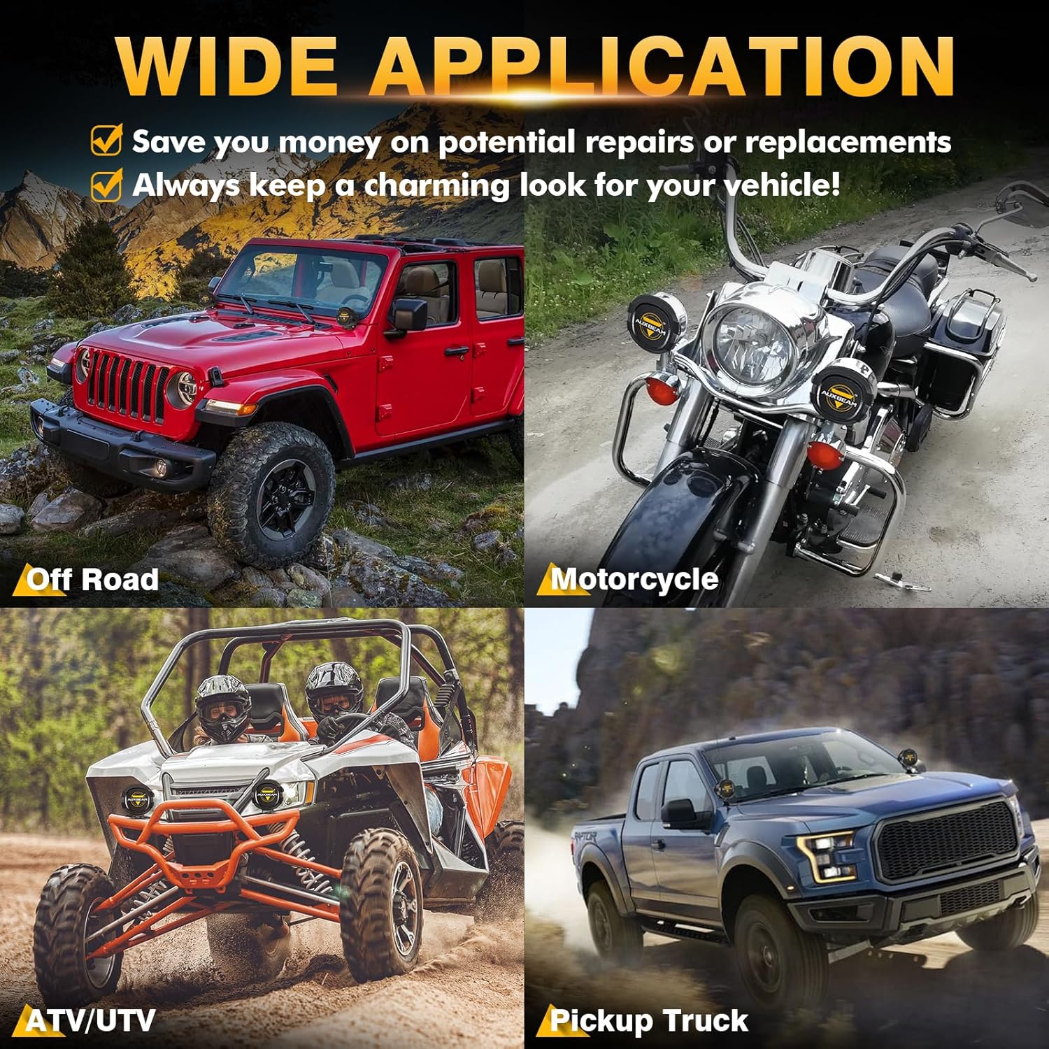- 【Trusted Brand Guarantee】Package comes with 2x black protective covers. Auxbeam offers a 24-month guarantee and 24-hour online service commitment. Customers can contact us at any time for any pre-sales or after-sales questions. Your satisfaction is always what we strive for.