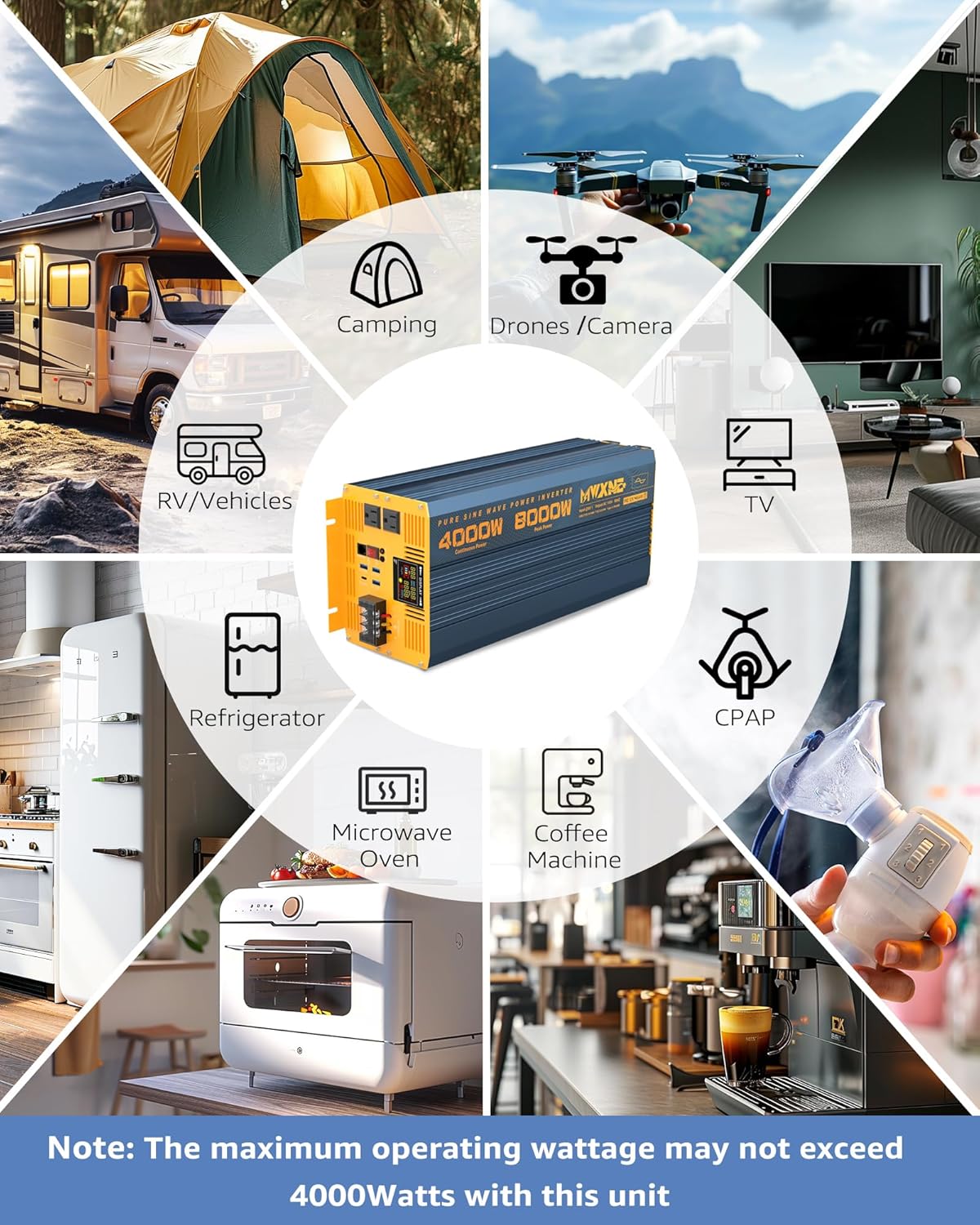 - 【24 MONTHS WARRANTY & FULL SET】 MWXNE Team offers 24 months warranty. Package includes 1x 4000W Pure Sine Wave Inverter, 1x User Manual, 2x Battery Cables, 1x Wireless Remote Controller, 1x Wired remote controller, Some Fuses, 1x Spanner, 1x Earth Wire. We provide 24/7 customer service. Please contact us by email if you have any question.