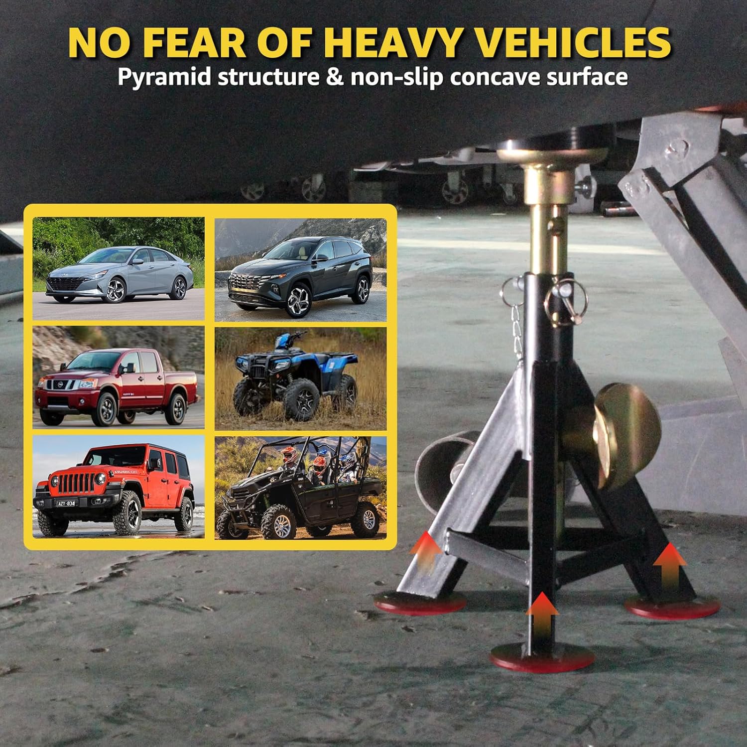 - ăSecure and ReliableăRest assured with the confidence of a secure and reliable support platform for your vehicle. Built with a heavy-duty construction and a focus on strength, these jack stands offer dependable support, empowering you to work confidently beneath your vehicle.
