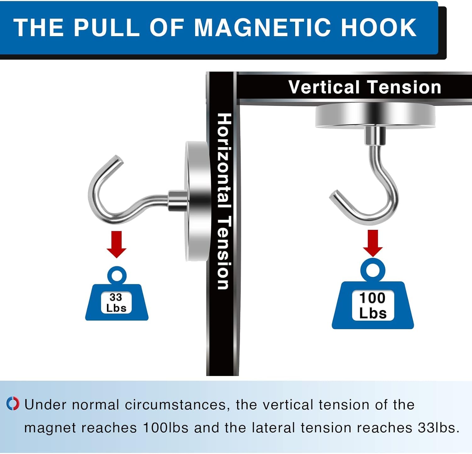 - 【POWERFUL HOOK MAGNETS】With our magnetic hooks heavy duty, you can achieve a pulling force of over 100LBS in the vertical direction and 30LBS in the horizontal direction. These amazing sturdy cruise magnetic hooks are perfect for hanging the items you need, making your life more organized.