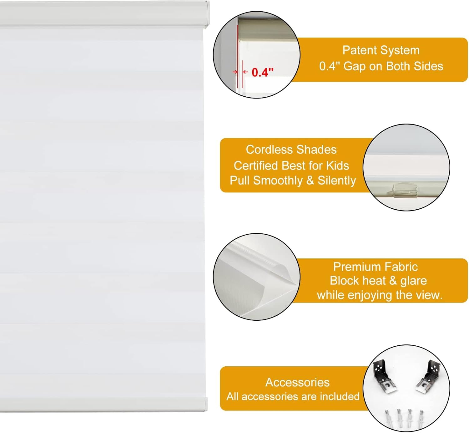 - 【Upgrade High-Quality Accessories】Our blind has been upgraded to have a sturdier bottom rail to prevent the fabric from fraying, which makes the two layers of fabrics more closely fit, maximizing the effect of shading. An anti-collision strip installed under the rail for protecting your window frame. Color-matched valance and the aluminum bottom bar suitable for all situations.
