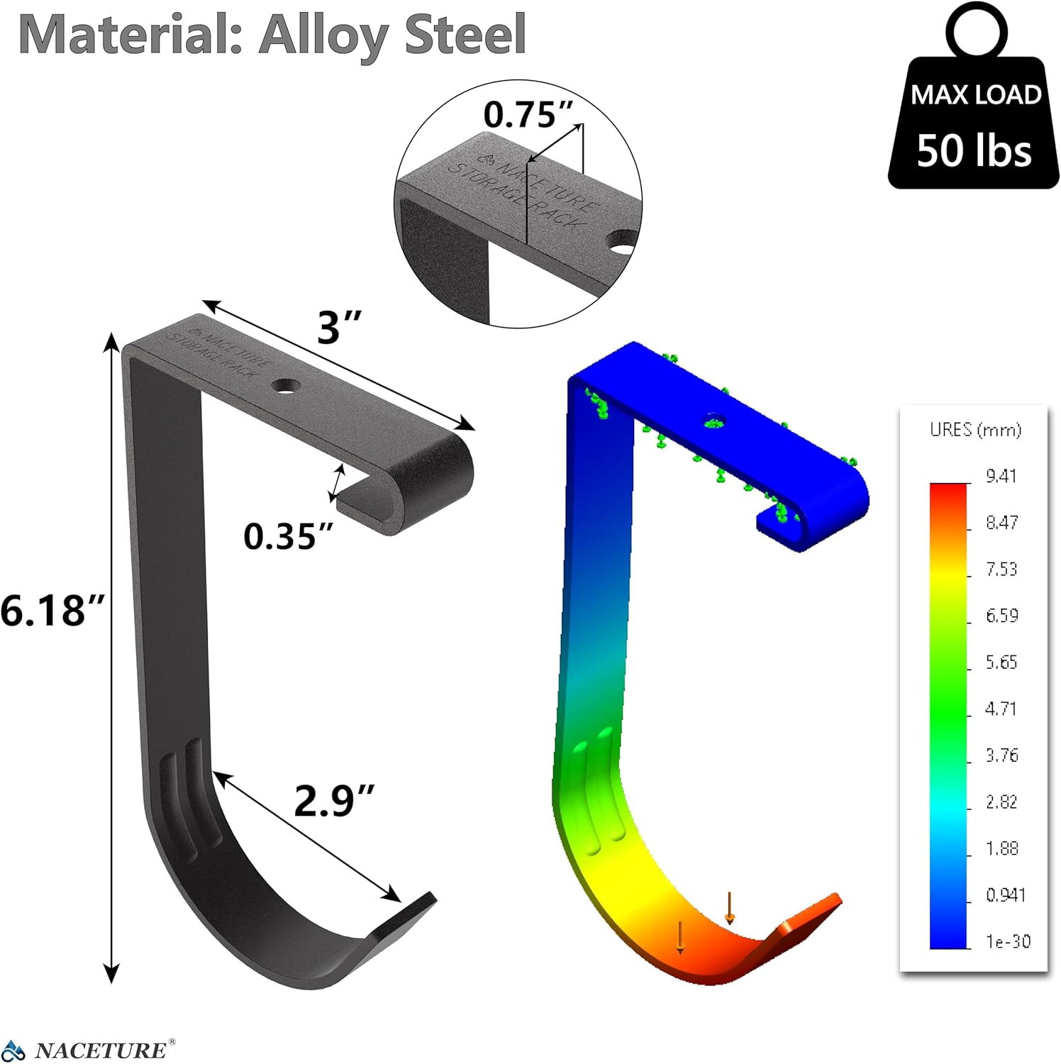 • ๐Ÿ”จNACETURE STRUCTURE DESIGN CEILING BIKE HOOK: Design for product structure reinforcement, bike rack garage ceiling has added reinforcement at curved areas to enhance its rigidity, ensuring stability when suspending heavy objects without concerns of deformation.