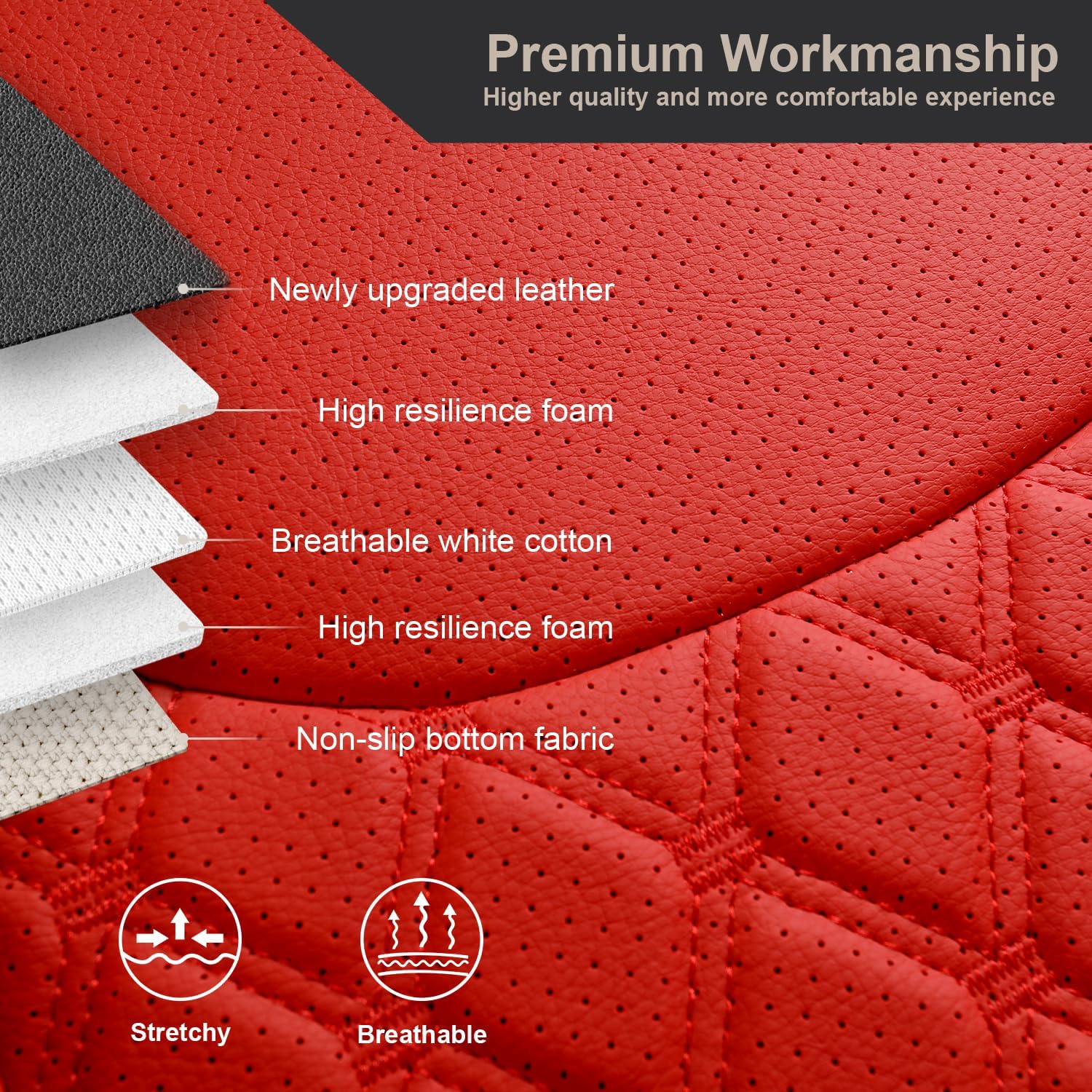 - ăQUILTED DESIGNă - Front seat cover show rich in stereoscopic vision with a diamond-shaped quilted design and stitching decoration, simple and stylish, and it can be perfectly integrated with your car interior.