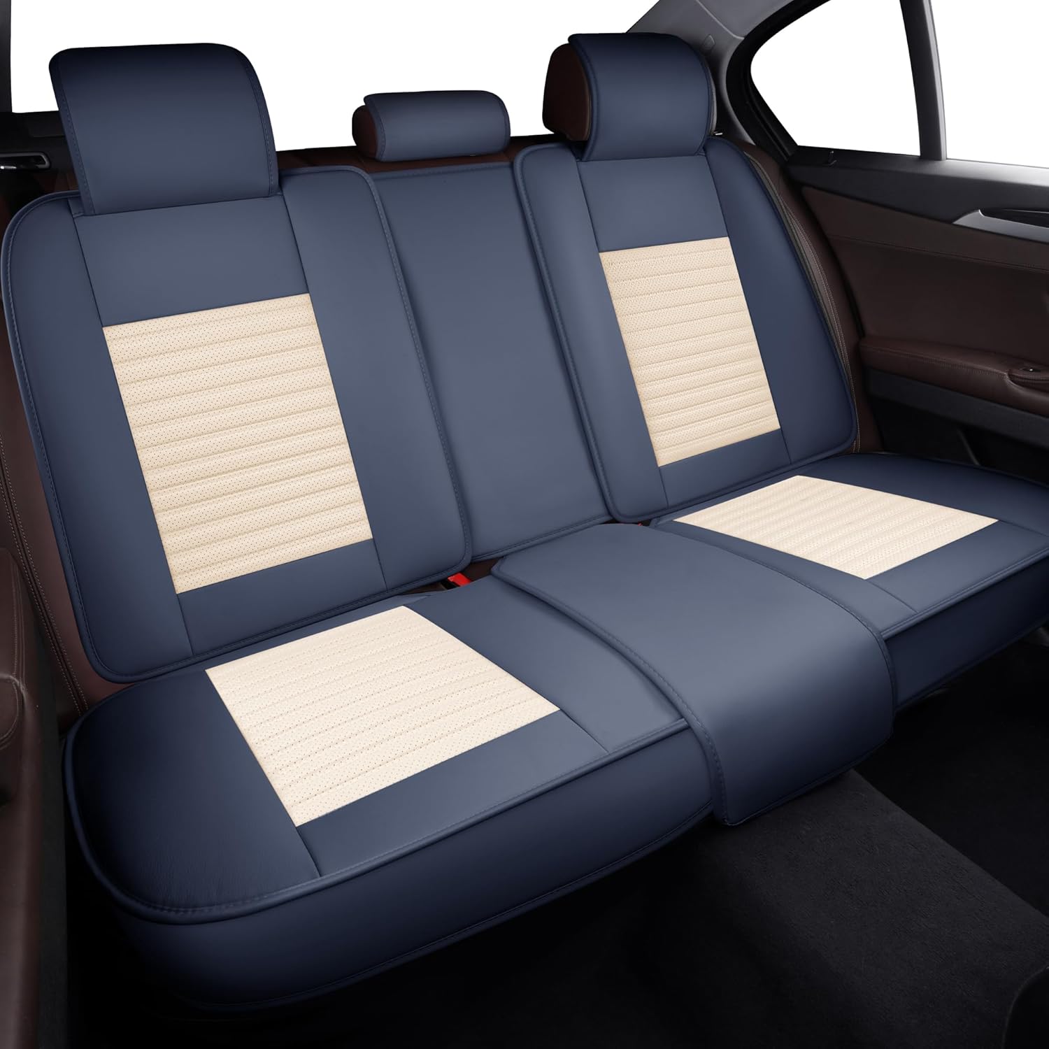 LINGVIDO Car Seat Covers, Breathable and Waterproof Faux Leather Automotive Seat Covers for Cars SUV Truck Sedan,Universal Anti-Slip Seat Cover with Backrest (Full Set, White & Blue)
