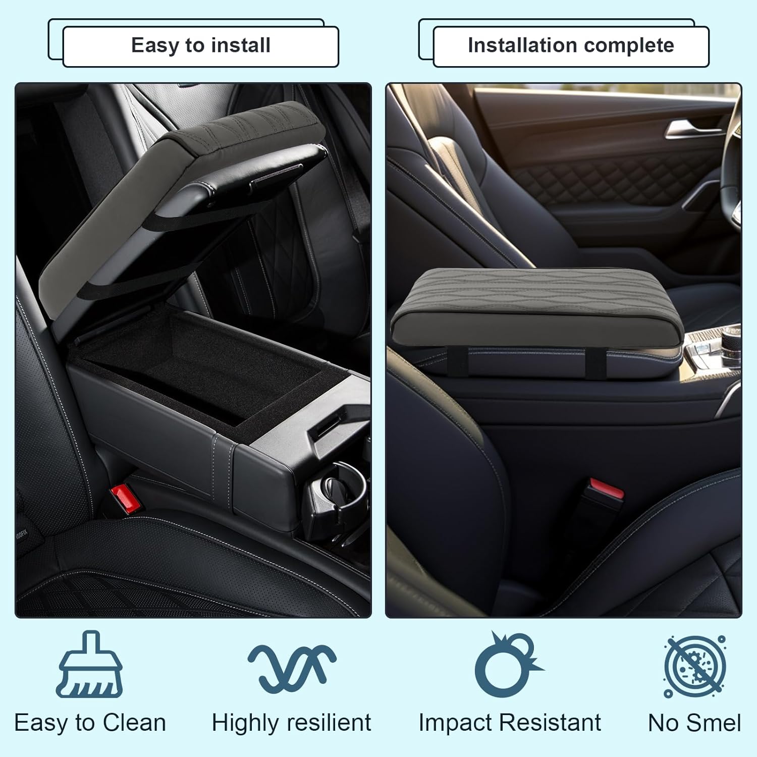 - Easy to Installation and Clean: No tools required for installation — simply slip it on for an instant upgrade to your vehicle armrest cushion. Waterproof armrest cushion is stain-resistant and easy to clean. Simply wipe away spills, dirt, and stains with a damp cloth, keeping your premium armrest cover looking brand new and ready for use