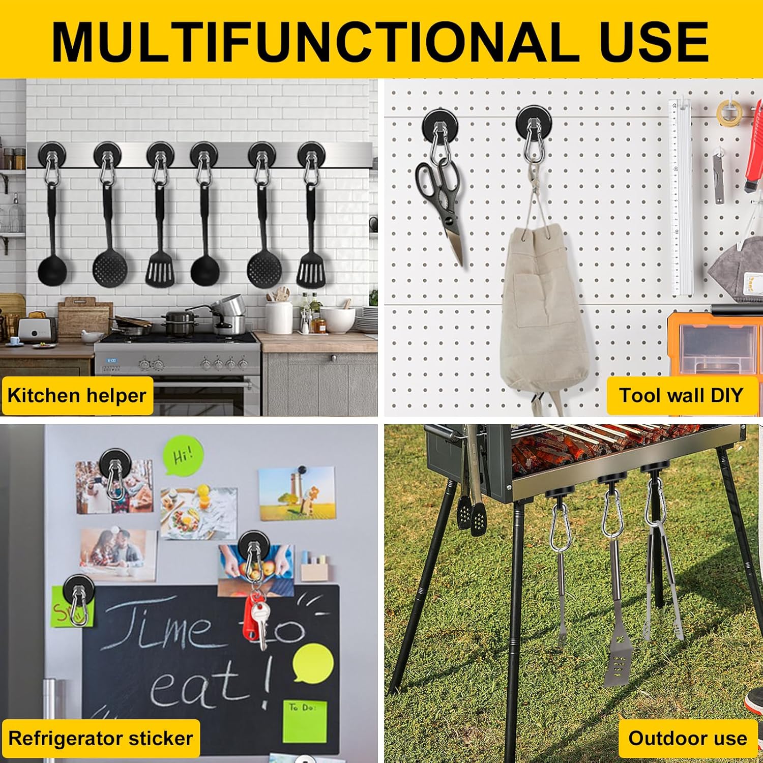 - SUPER DURABLE - These magnetic rotating hooks are plated with Ni+Cu+Ni triple protective layer, which is corrosion and rust resistant, and with the stainless steel carabiner, our hooks are great for outdoor long time use