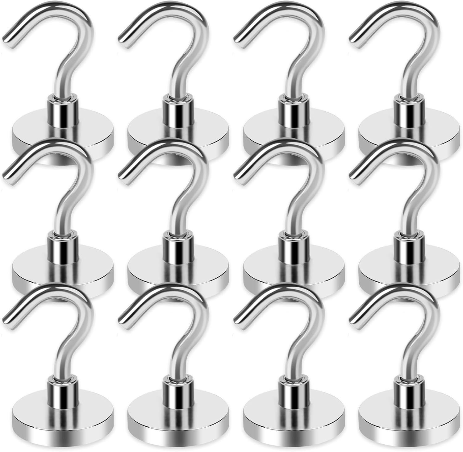 LOVIMAG Strong Magnetic Hooks, 40LBS Neodymium Magnets with Hooks Magnetic Hooks Cruise for Refrigerator, Powerful Magnet Hooks Magnetic Hanger for Hanging, Grill, Locker,Kitchen, Metal Door-12 Pack