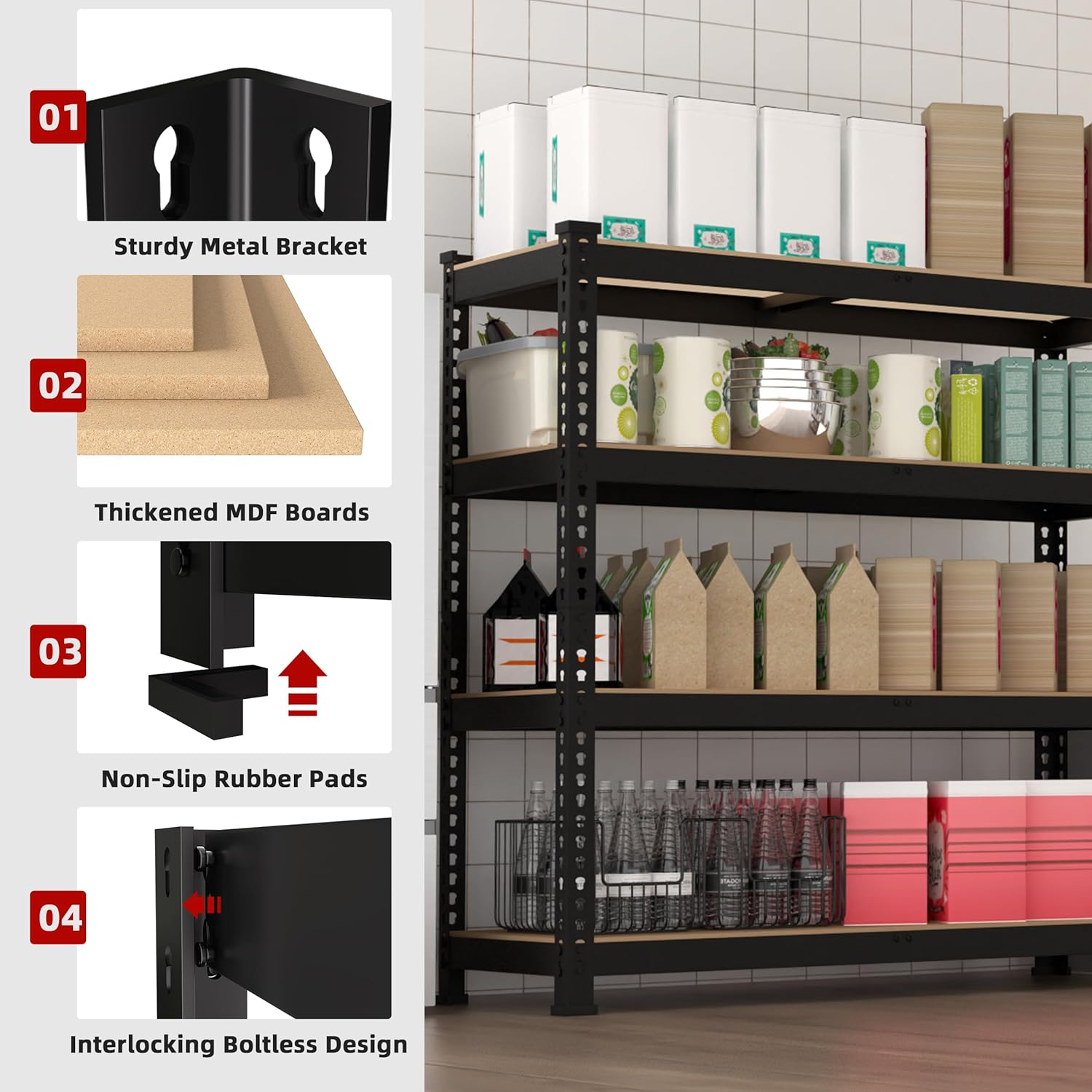4 Packs 36" W x 16" D x 55" H Adjustable Garage Storage Shelves - 4-Shelf Heavy Duty Shelving Unit, Metal Utility Storage Organizer Racks for Warehouse Pantry Closet Kitchen, Black