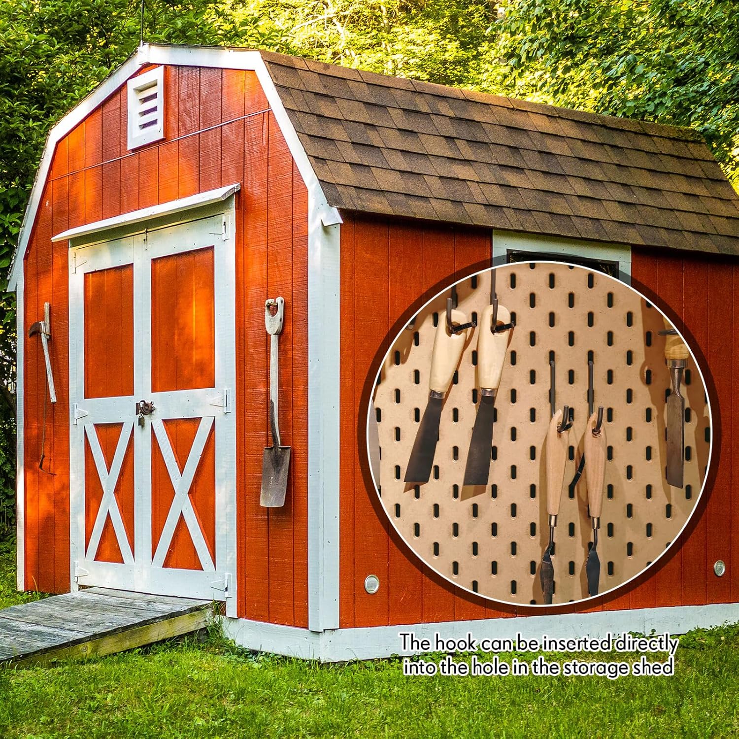 - Universal Design: enjoy a functional and universal design that makes these wall mount hooks an essential for most sheds; By arranging these hooks on your shed walls, you can maximize the utilization of your shed, enhancing its capacity to hold a multitude of tools or goods in an orderly manner