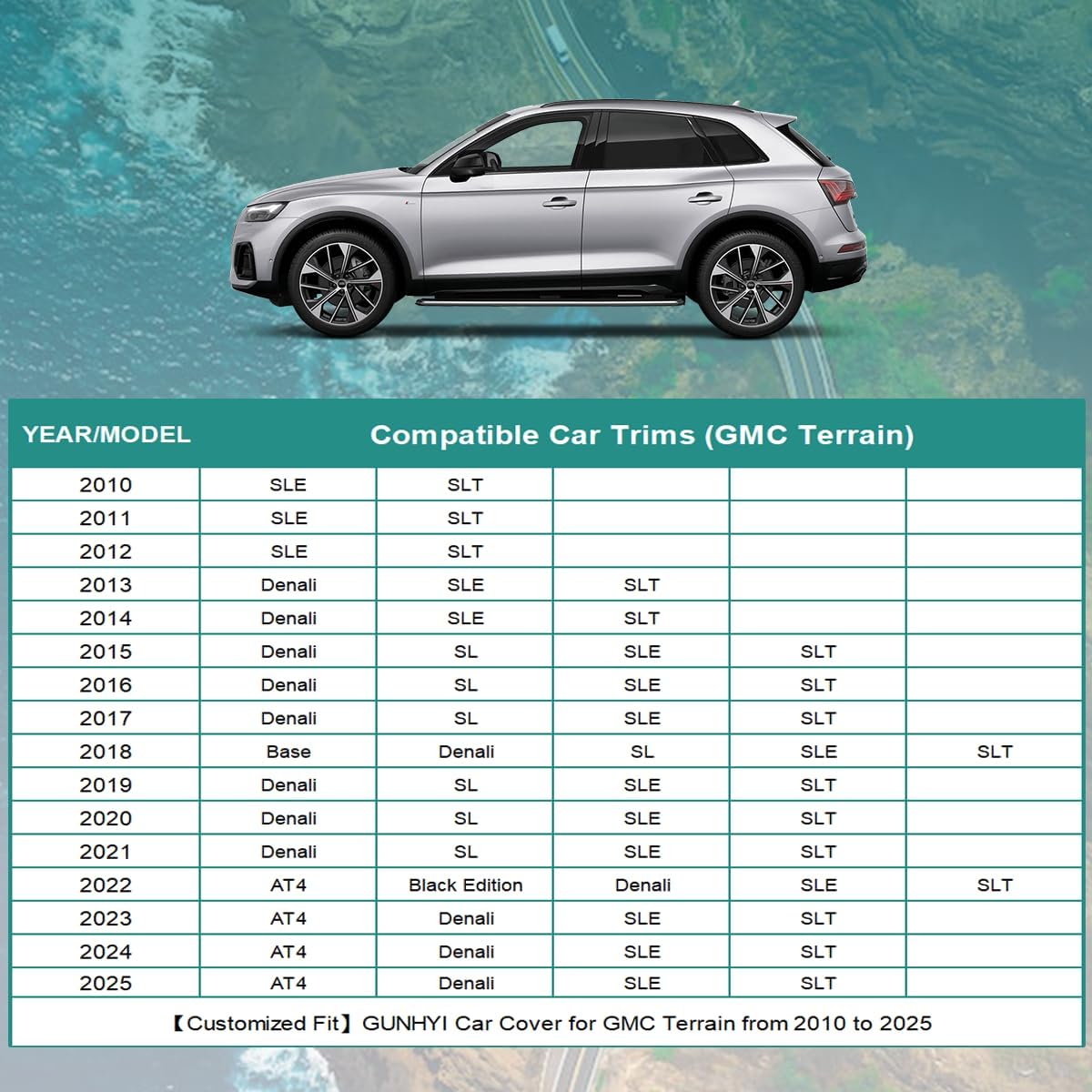 - ăCompatible withăThis Full Car Cover Custom fit for GMC Terrain from 2010 to 2025. Comes with a microfiber towel that you can use to clean your car, because if there is sand on the surface of the car before use, it may damage the paint.